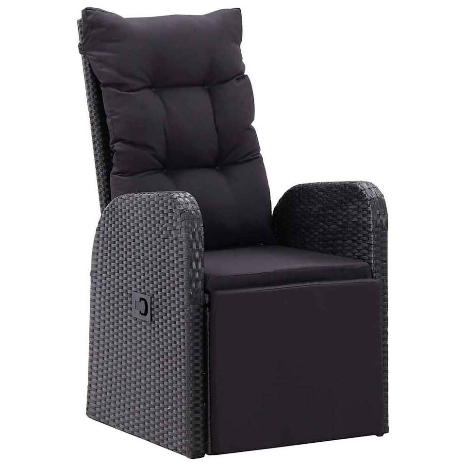 Set da pranzo da esterno da 11 pezzi con cuscini in polyrattan nero, set da giardino