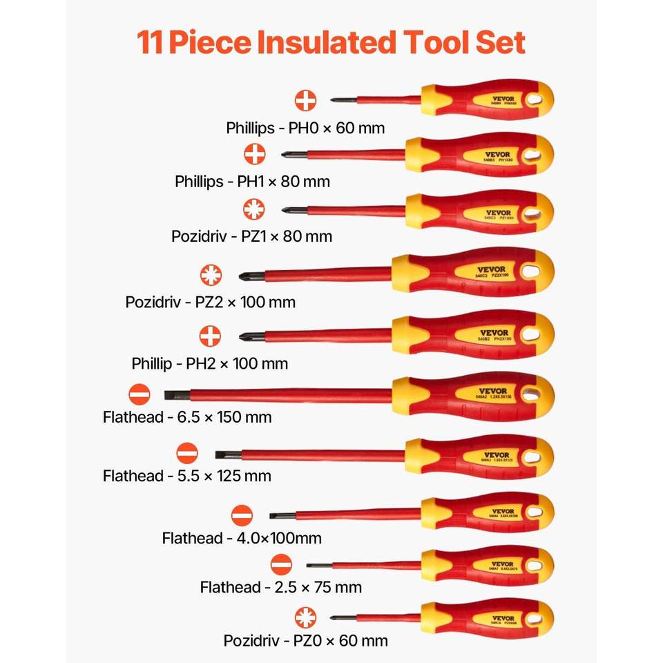 Set di 11 Cacciaviti Isolati Professionali per Elettricisti, Set di Utensili Isolati 1000V, Set di Attrezzi Professionali Magnetici