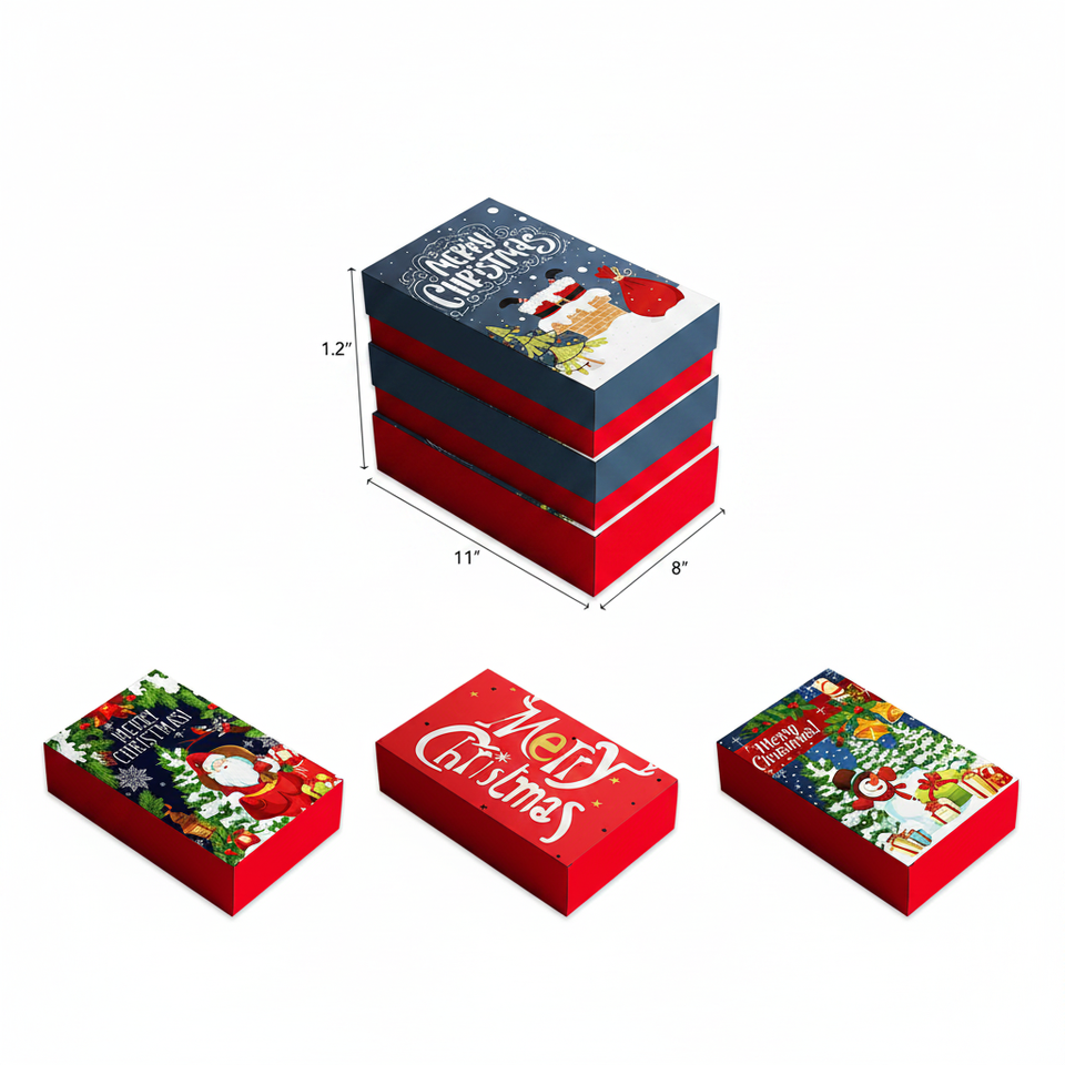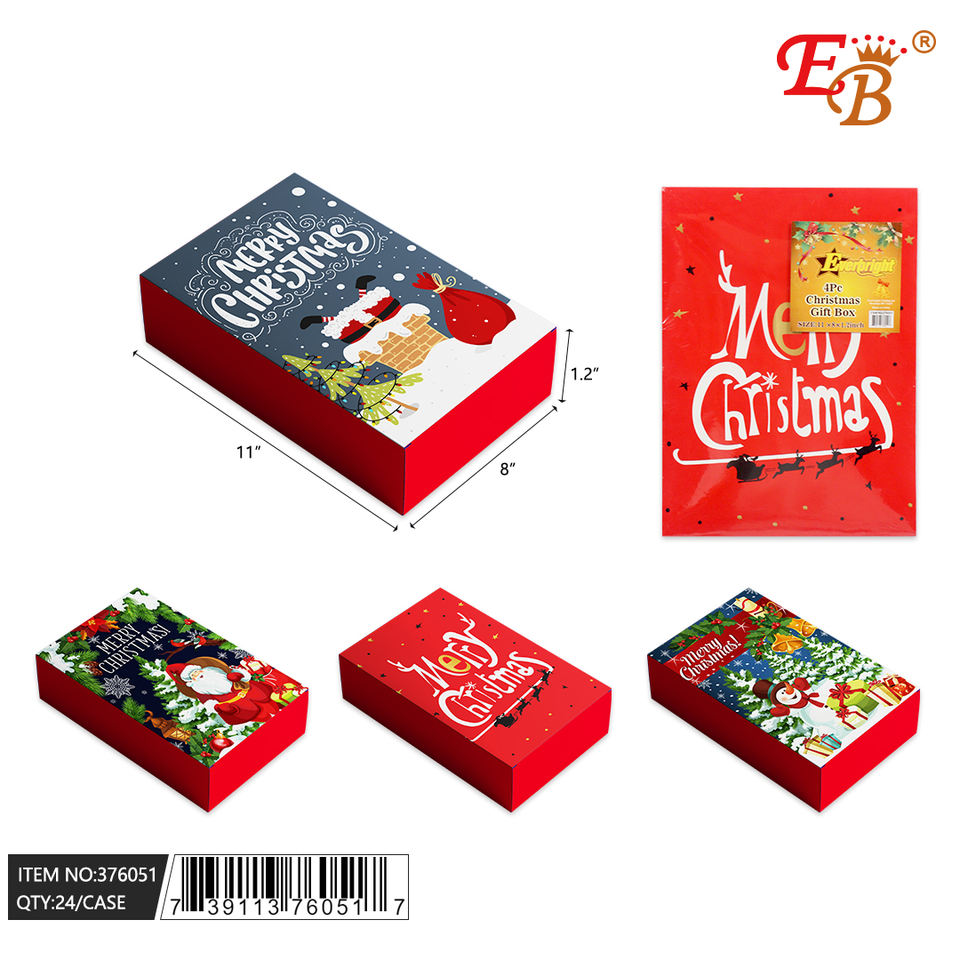 11\"X8\"X1.2\" 4-PC Christmas Gift Box 24PCS/Carton Festive Holiday Supplies
