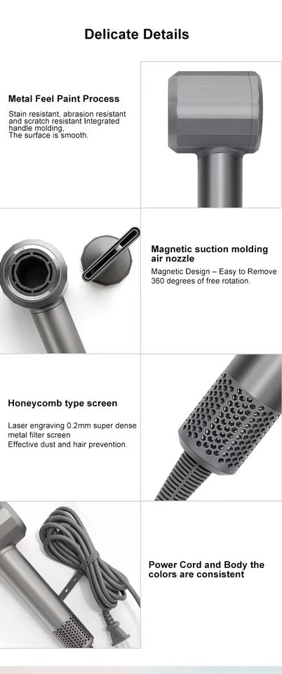 Asciugacapelli ad alta velocità 110,000 RPM per asciugatura rapida 200 milioni di ugelli magnetici leggeri ionici negativi