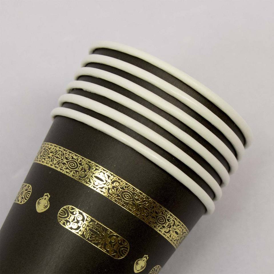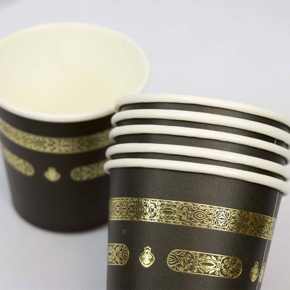 110 ml Black Gold Foil Paper Mini Cup 4 oz Umrah Kaaba Zamzam Cup