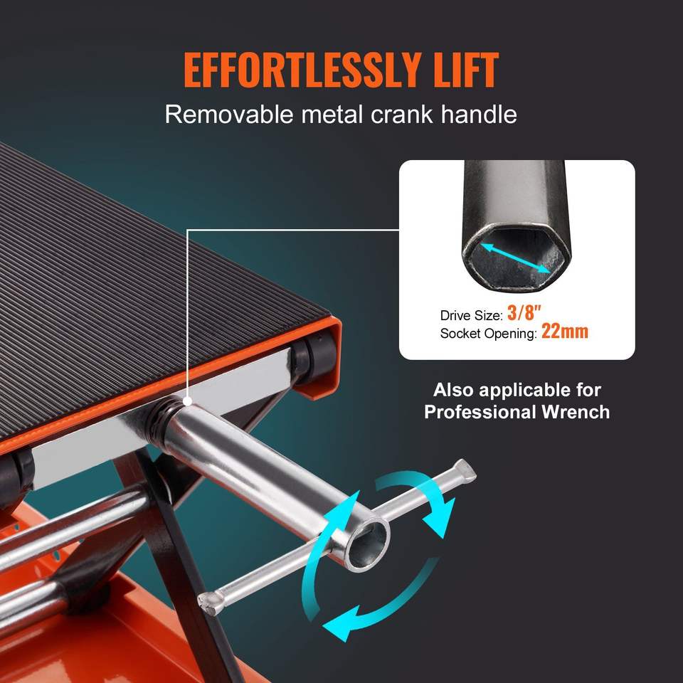 Sollevatore a Forbice per Moto da 1100 LBS con Piattaforma Larga, Perno di Sicurezza, Altezza di Sollevamento 3.7"-13.8" e Manovella