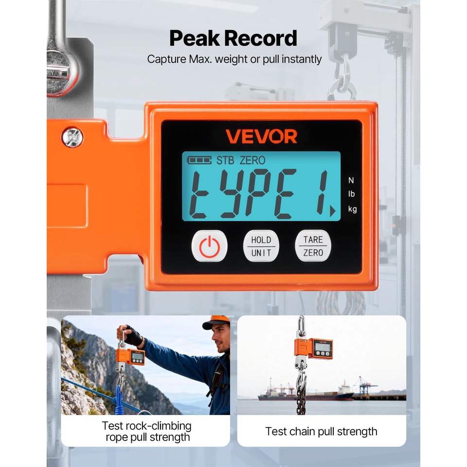 Bilancia Digitale per Gru con Capacità Massima di 500 kg/1100 Libbre, Bilancia Industriale Sospesa per Carichi Pesanti con Cassa in Alluminio Pressofuso e Display LCD