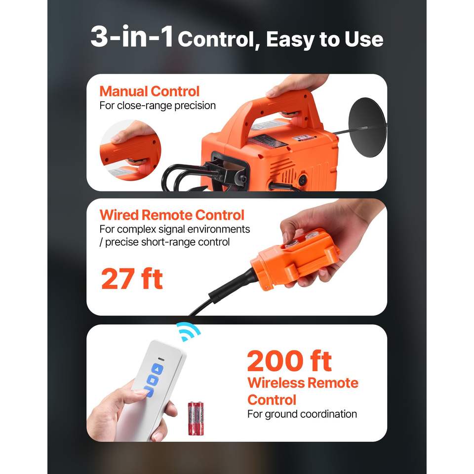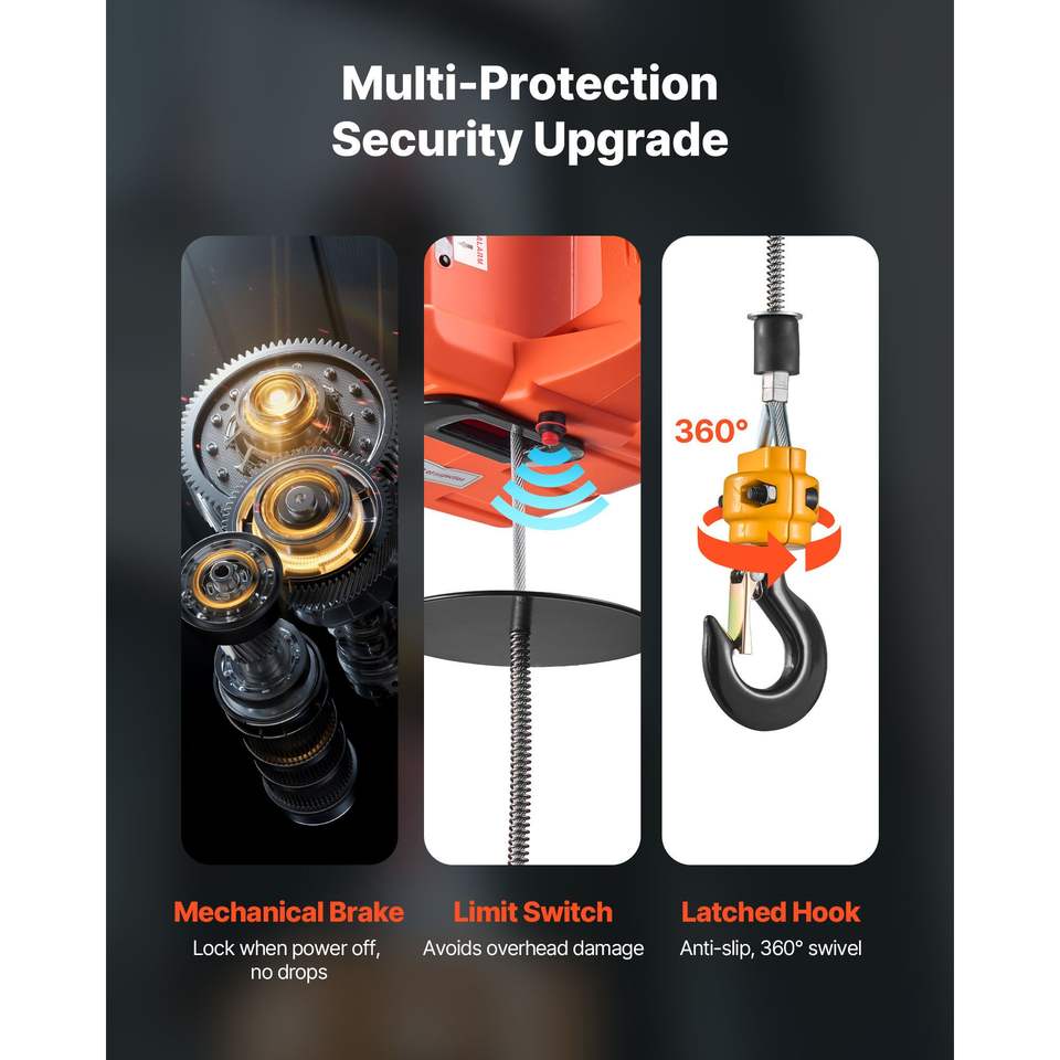 Verricello Elettrico Portatile da 1500W con Capacità di 1100 Libbre, Paranco Elettrico 3-in-1, Altezza di Sollevamento 25 Piedi, Velocità 16,4 Piedi/min