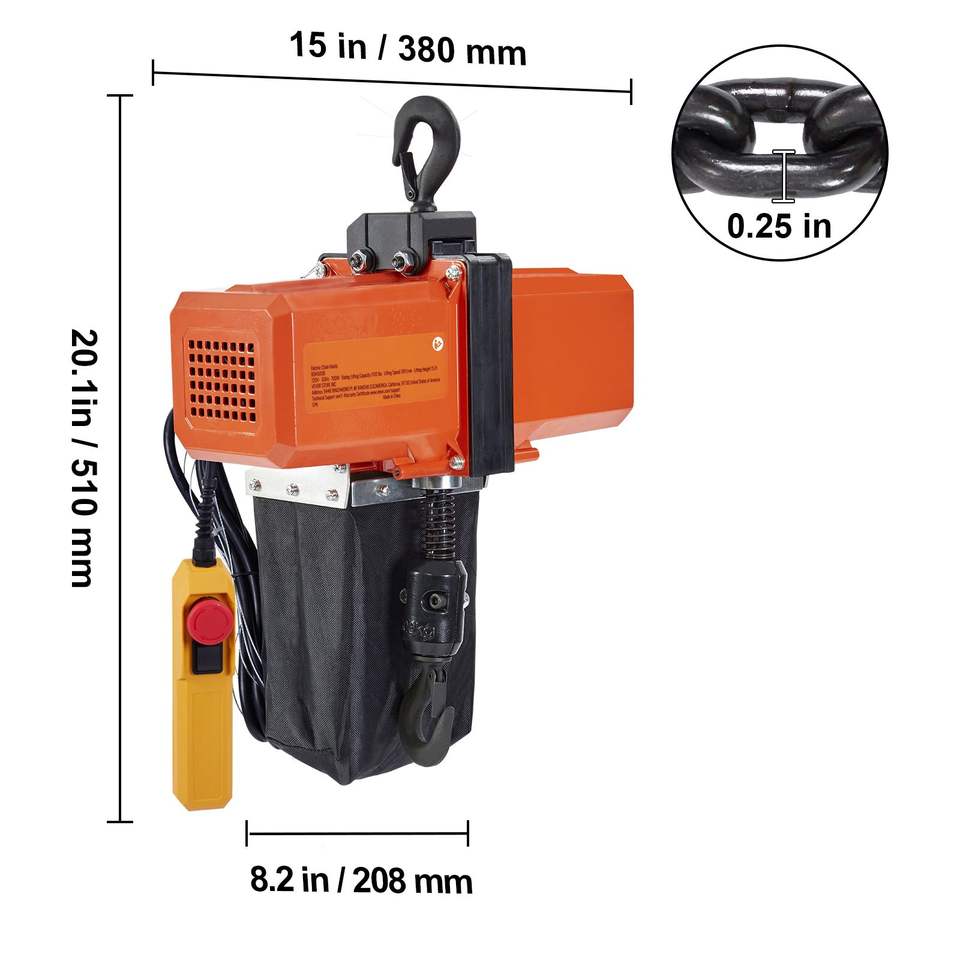 Paranco Elettrico a Catena da 1100 Libbre con Altezza di Sollevamento di 15 Piedi, Gru a Ponte Monofase 120V, Catena da 10 Piedi per Fune da 10 Piedi