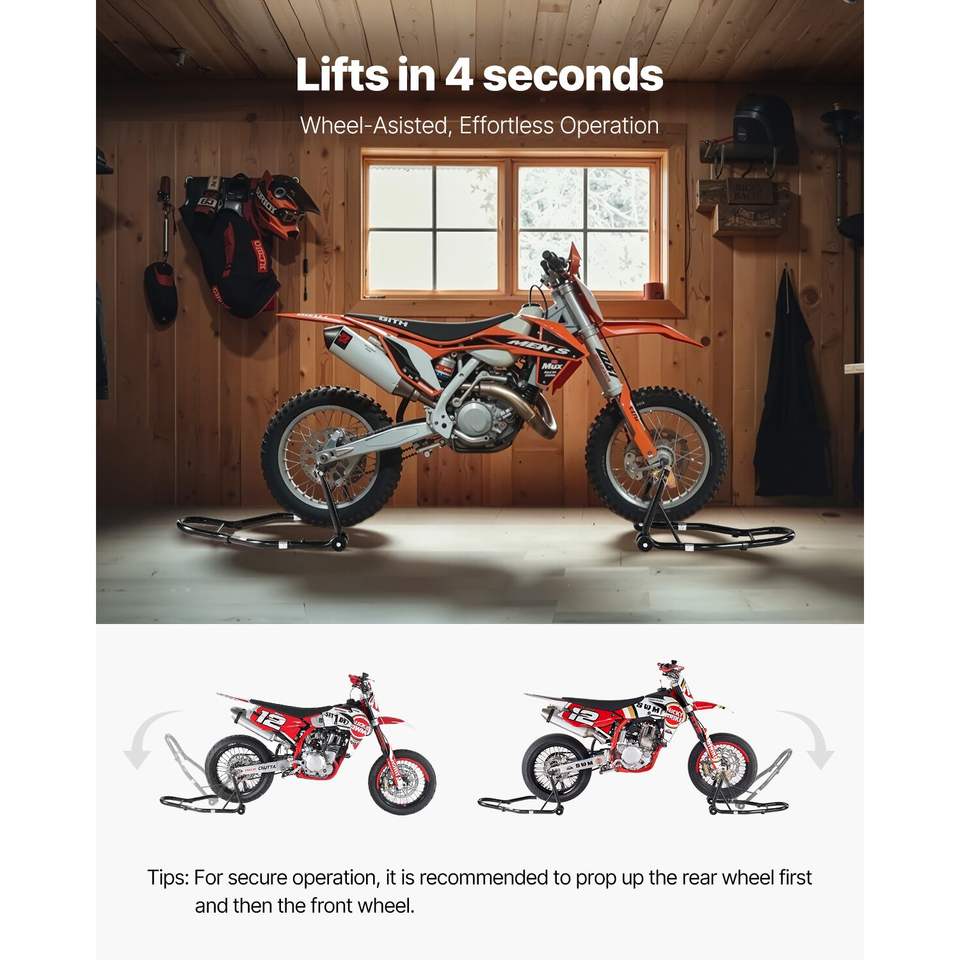 Sollevatore per Moto con Capacità di 1100 libbre, Combo Anteriore e Posteriore con Supporto per Ruota Anteriore a Doppia Forcella e Bobina per Forcellone U+L