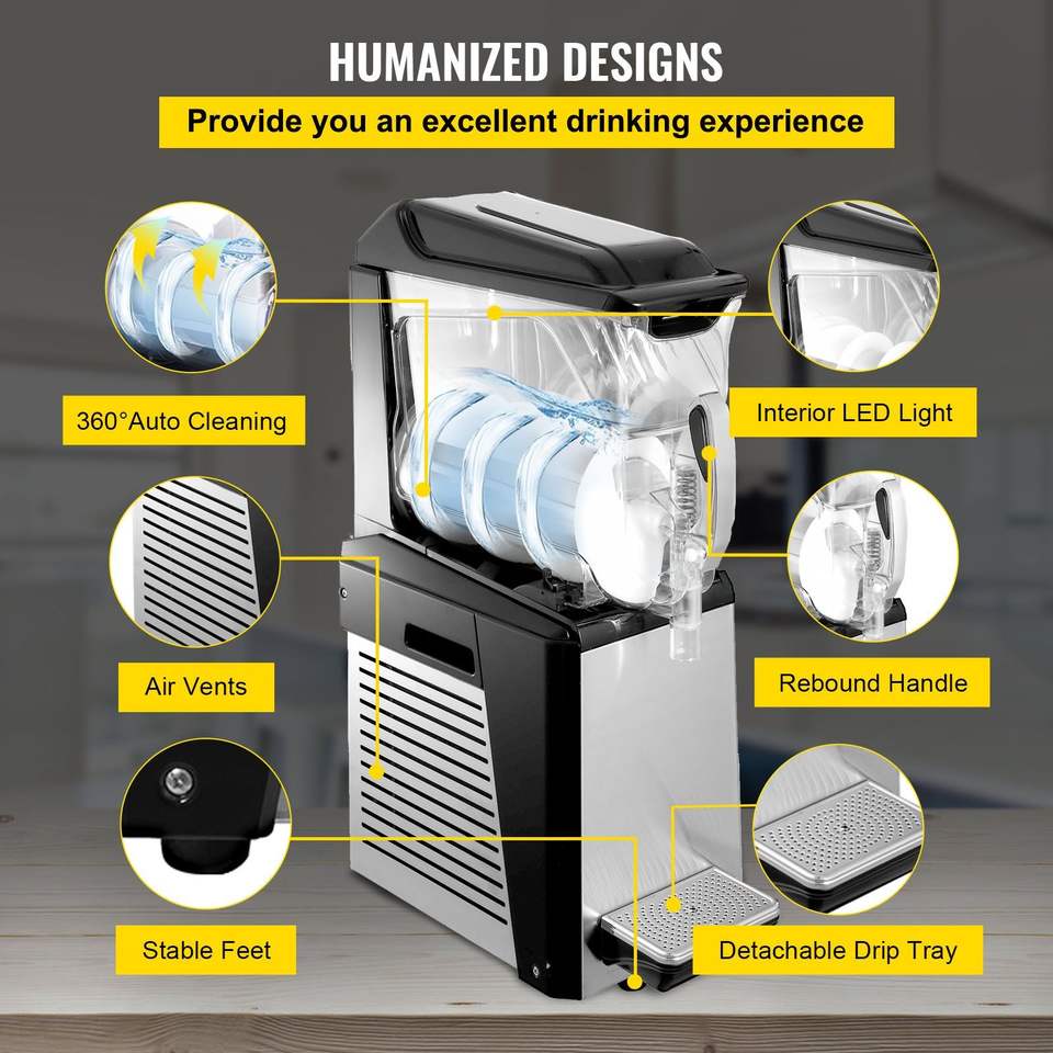 110V 600W Commercial Slushy Machine 10L Automatic Frozen Drink Maker Day Night Cleaning Modes for Supermarkets Cafes Snack Bars