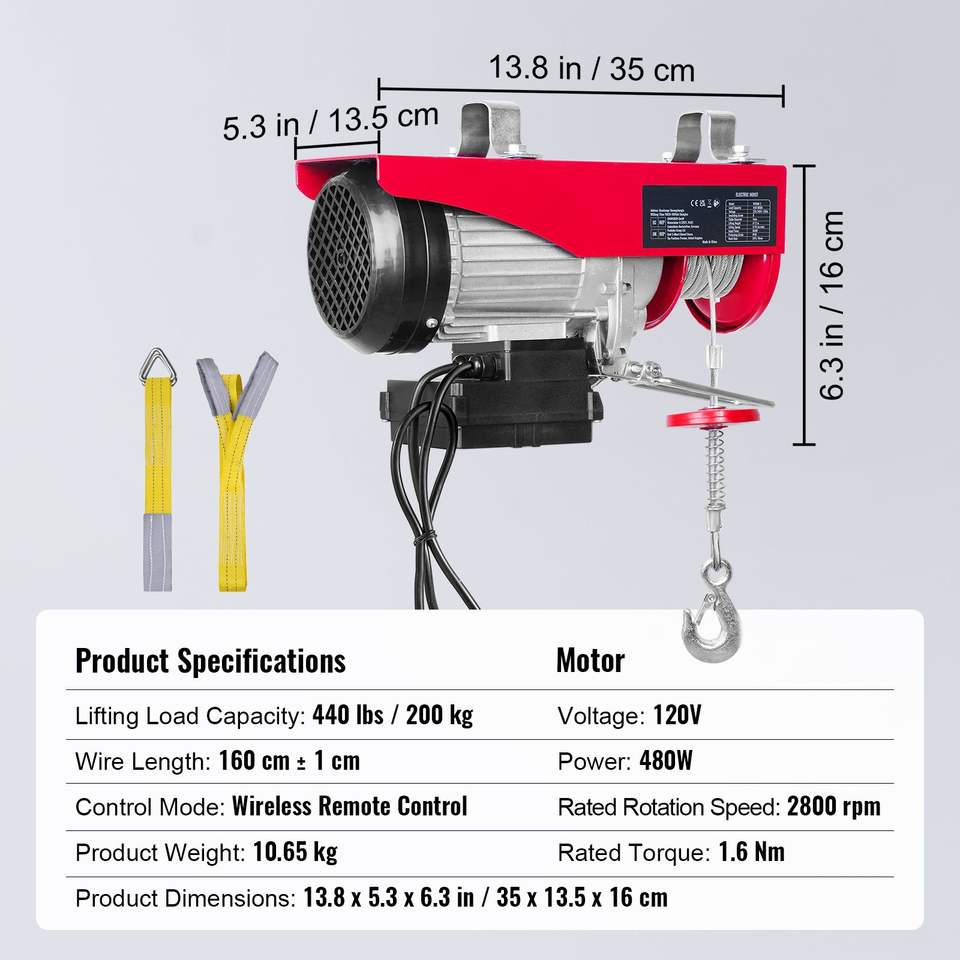 Argano Elettrico in Acciaio 110V con Telecomando Wireless, Cavo Singolo da 40ft, Capacità di Sollevamento 440 Libbre, Paranco Elettrico Wireless