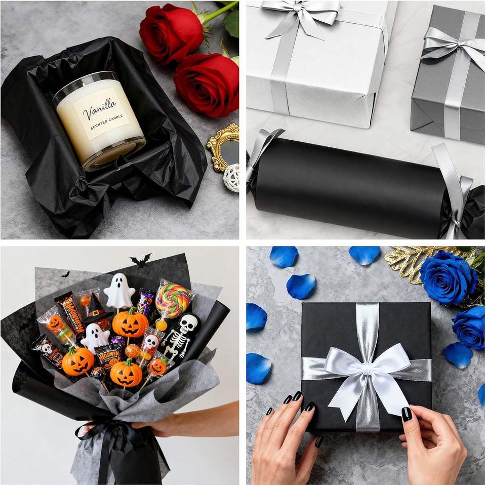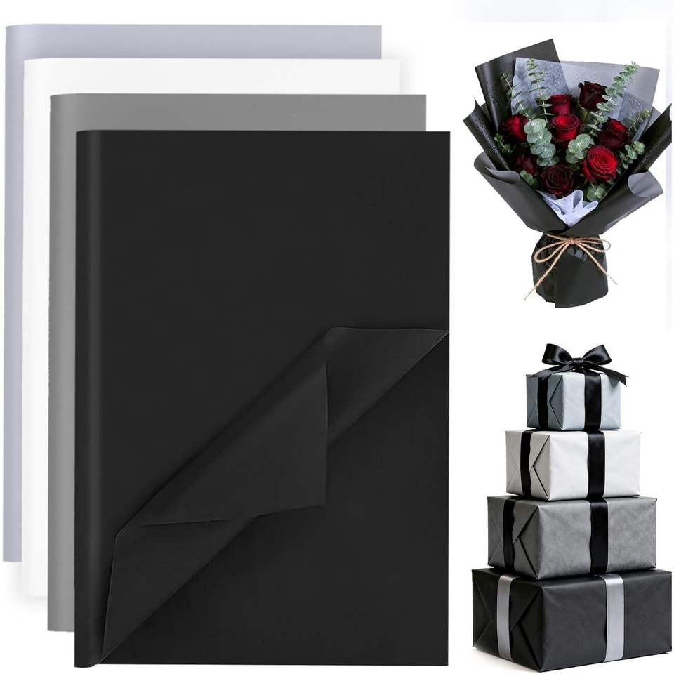 112 Fogli di Carta Velina in Confezione da 20 X 14 Pollici, 4 Colori - Nero, Bianco, Grigio per Sacchetti Regalo, Fai da Te, Decorazioni per Feste