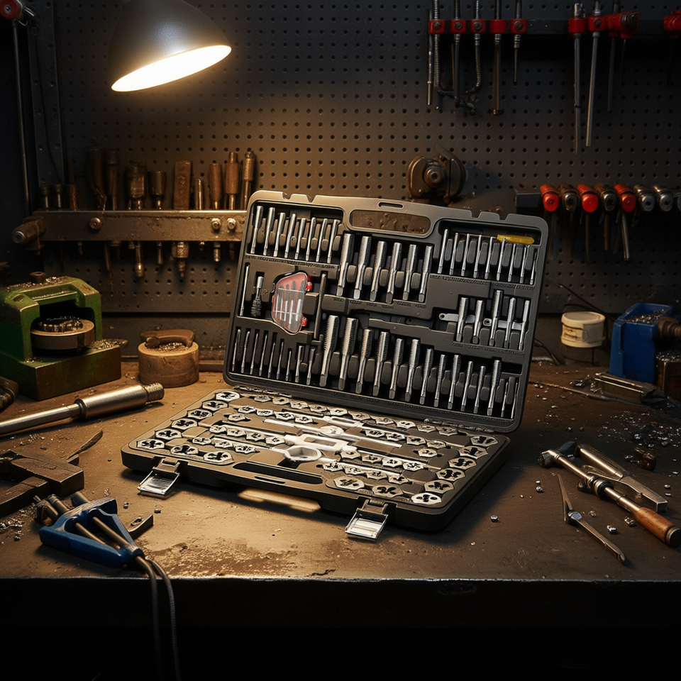 Tap Die Set 116 Piece Metric SAE Carbon Steel PVD Coated Left Hand Thread Cutting Tools Machining Kit