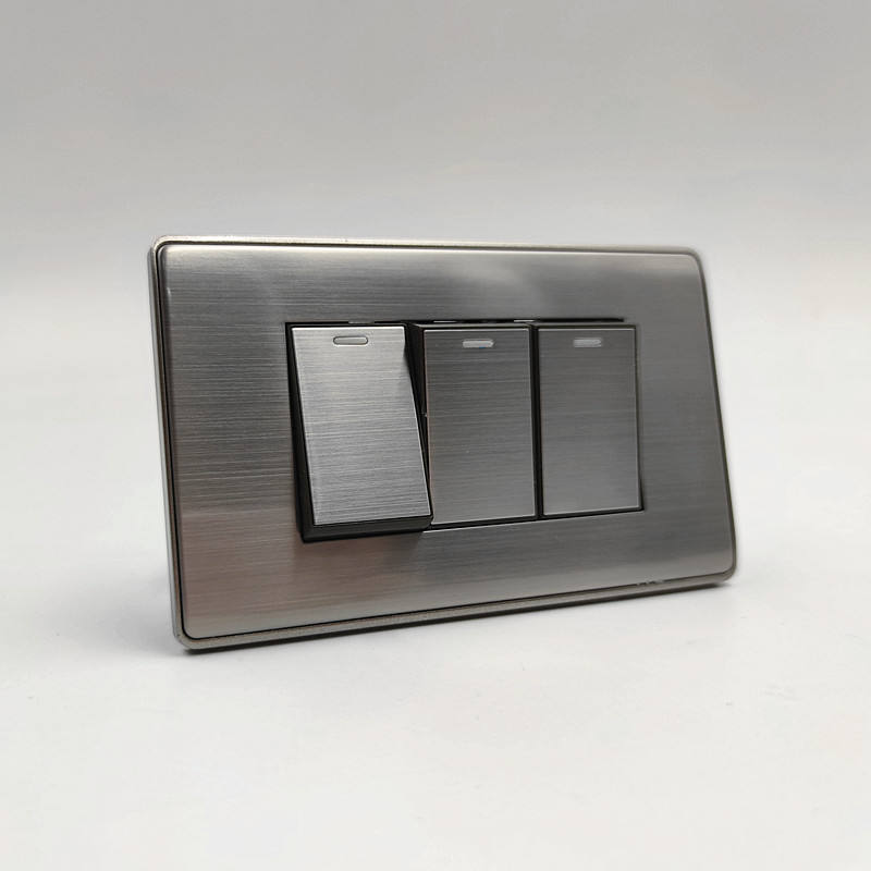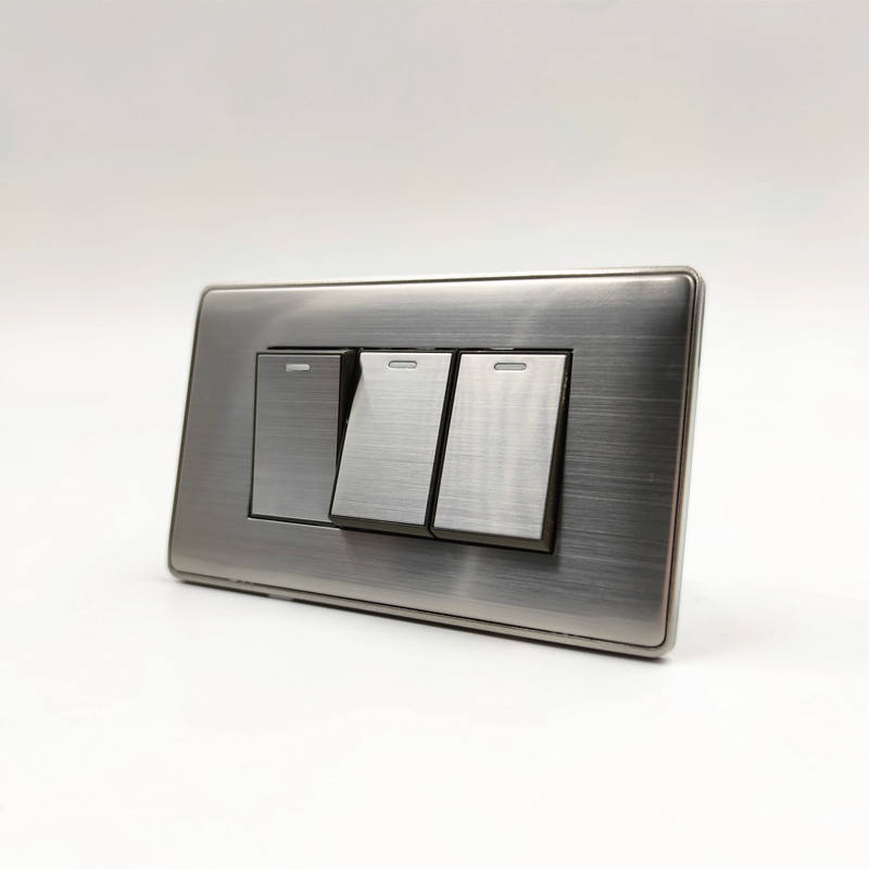 118 120 mm Thailand Type 3 Gang Push Button Wall Switch Modern Stainless Steel Panel for Home