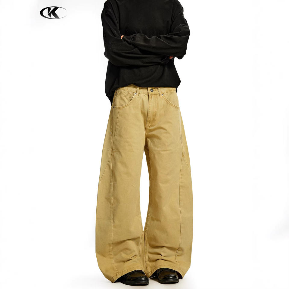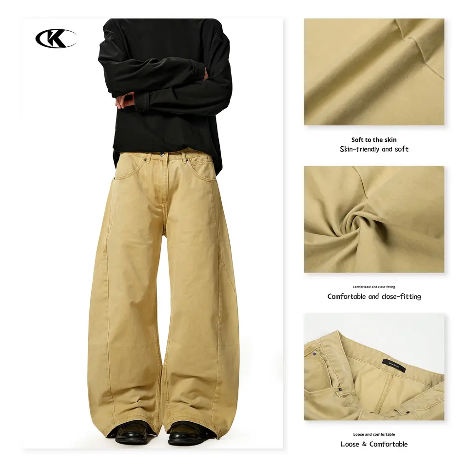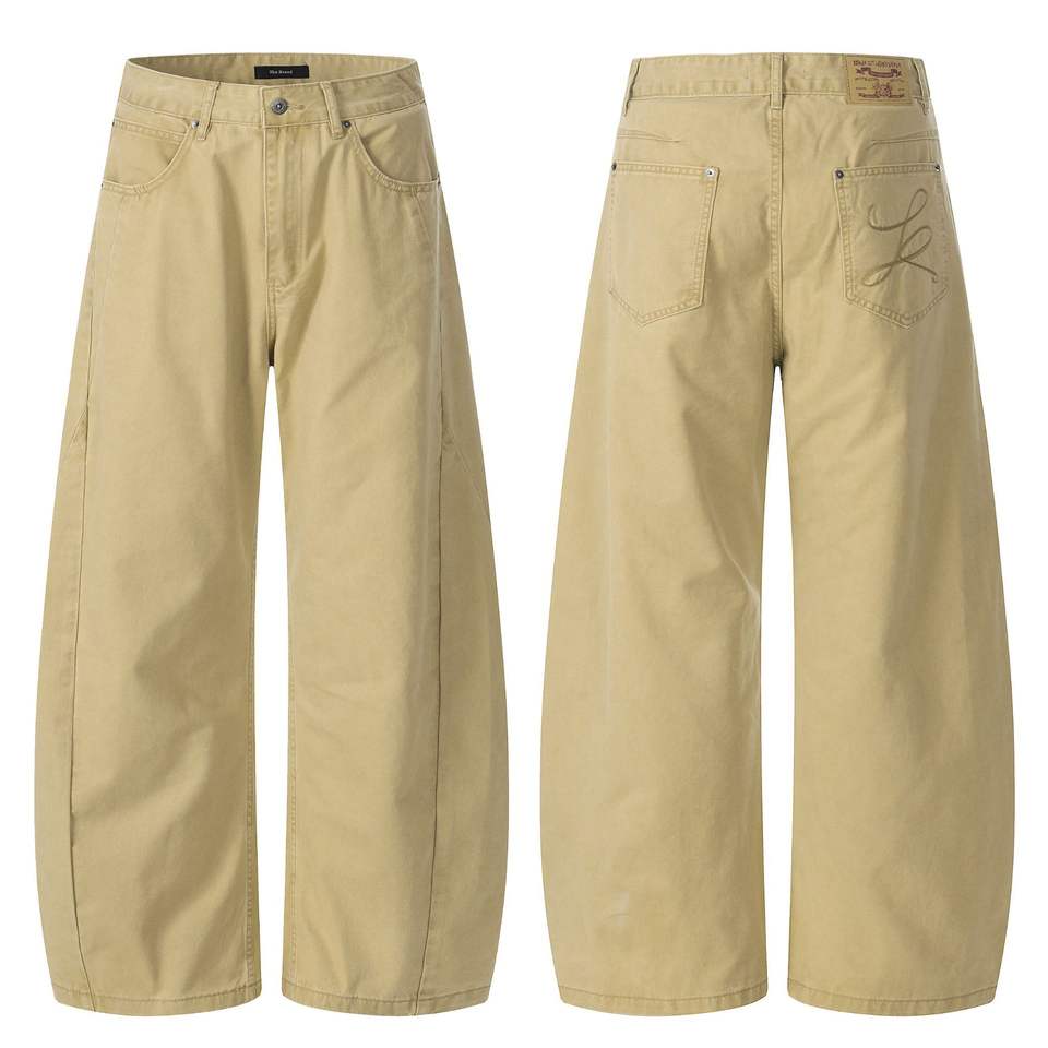 11KN Factory Men's High-Quality Beige Wide-Leg Casual Pants - Customizable Embroidered Pocket Trousers Direct Wholesale Supplier