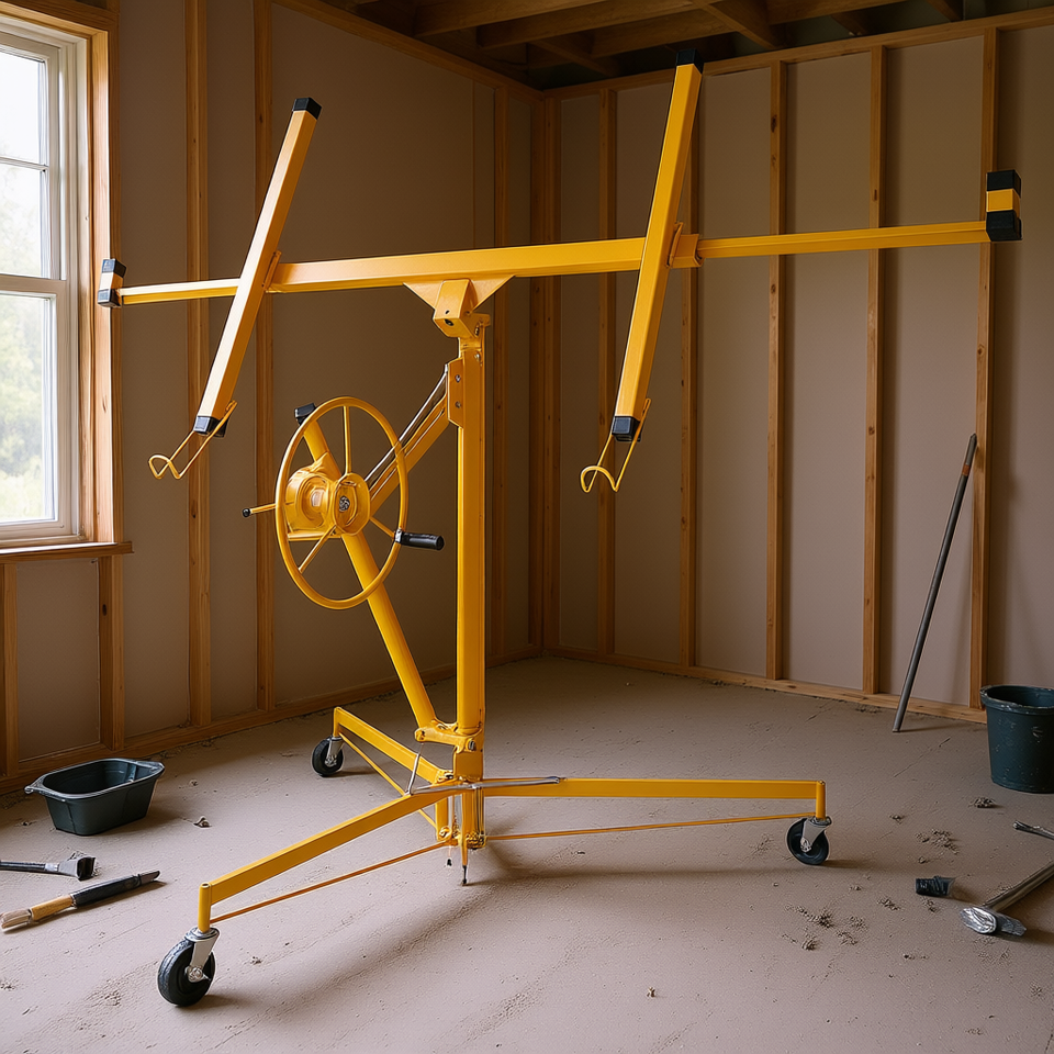 Sollevatore per Pannelli in Cartongesso 11 Piedi Giallo in Metallo, Attrezzatura da Costruzione per Operazioni a Terra