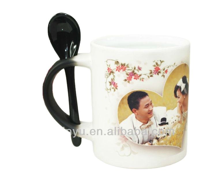 11 once colore Nero magia tazze con il cucchiaio PER ZIBO XINYU