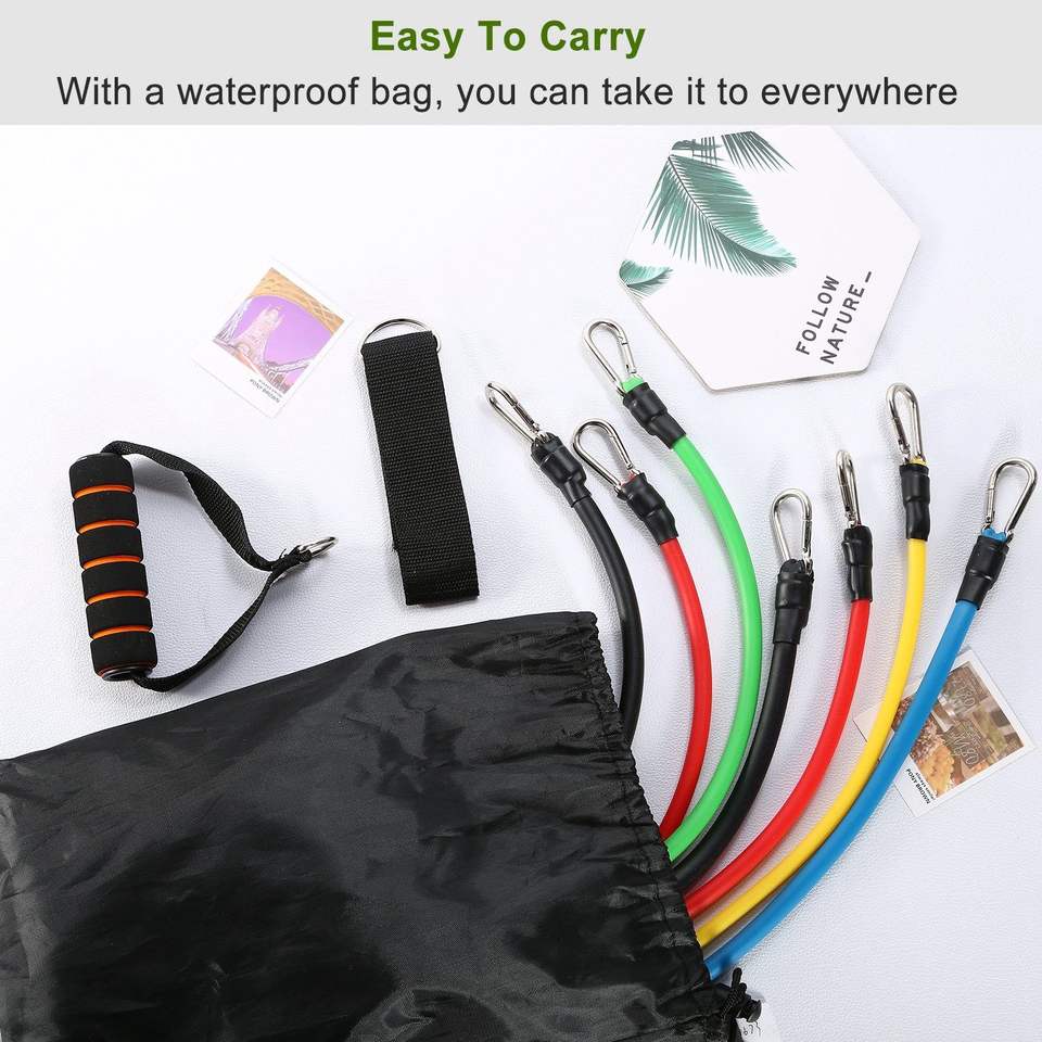 11pcs Fitness Workout Exercise Bands Set 100lbs Resistance Tubes Door Anchor Handles Ankle Straps for Physical Training Yoga