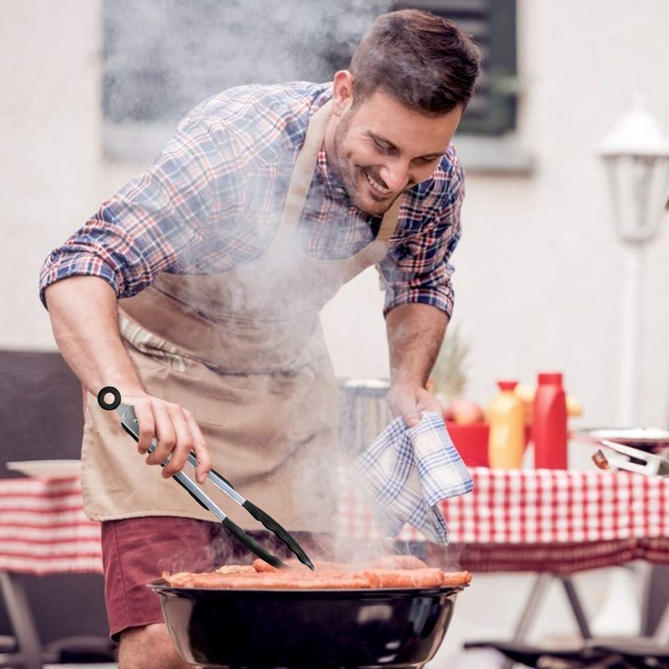 Set di 11 utensili da cucina in silicone con manico in legno, resistenti al calore: spatola, paletta, mestolo, pinze per spaghetti, cucchiaio, frusta per uova