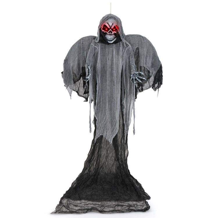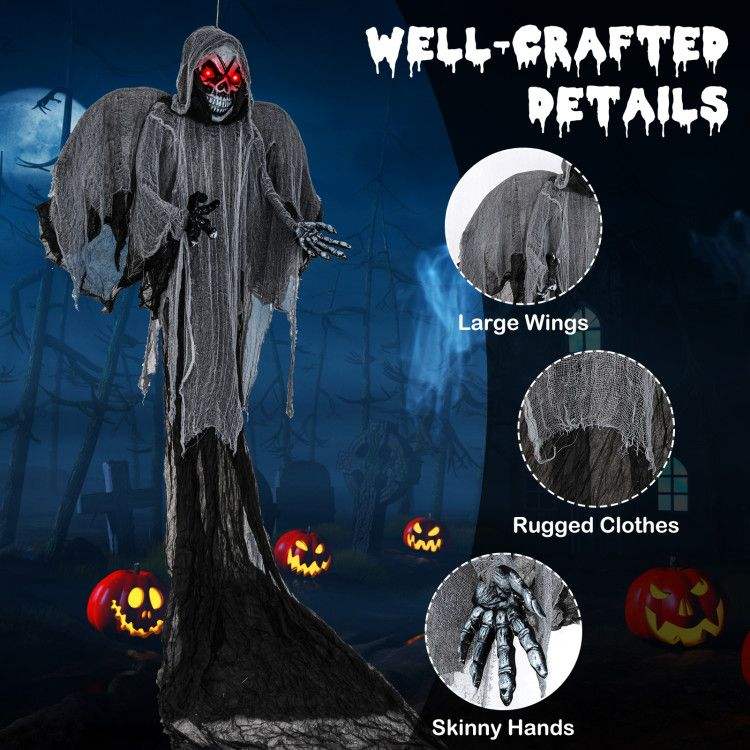 Scheletro Fantasma di 3,7 Metri per Decorazione di Halloween con Occhi Rossi Lampeggianti e Suoni Spaventosi