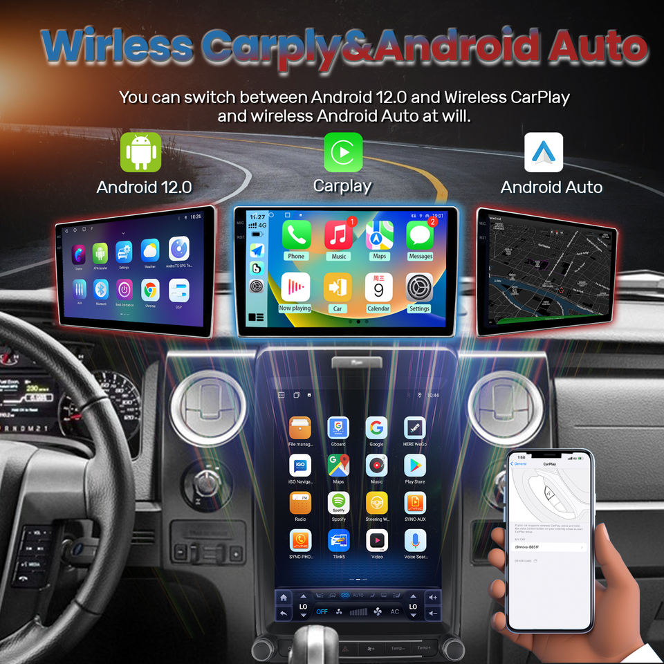 Autoradio Android 12.1 Pollici 4+64G Stile Verticale 8 Core GPS Navigazione WiFi 5G Touch Screen per Ford F150 2015-2021