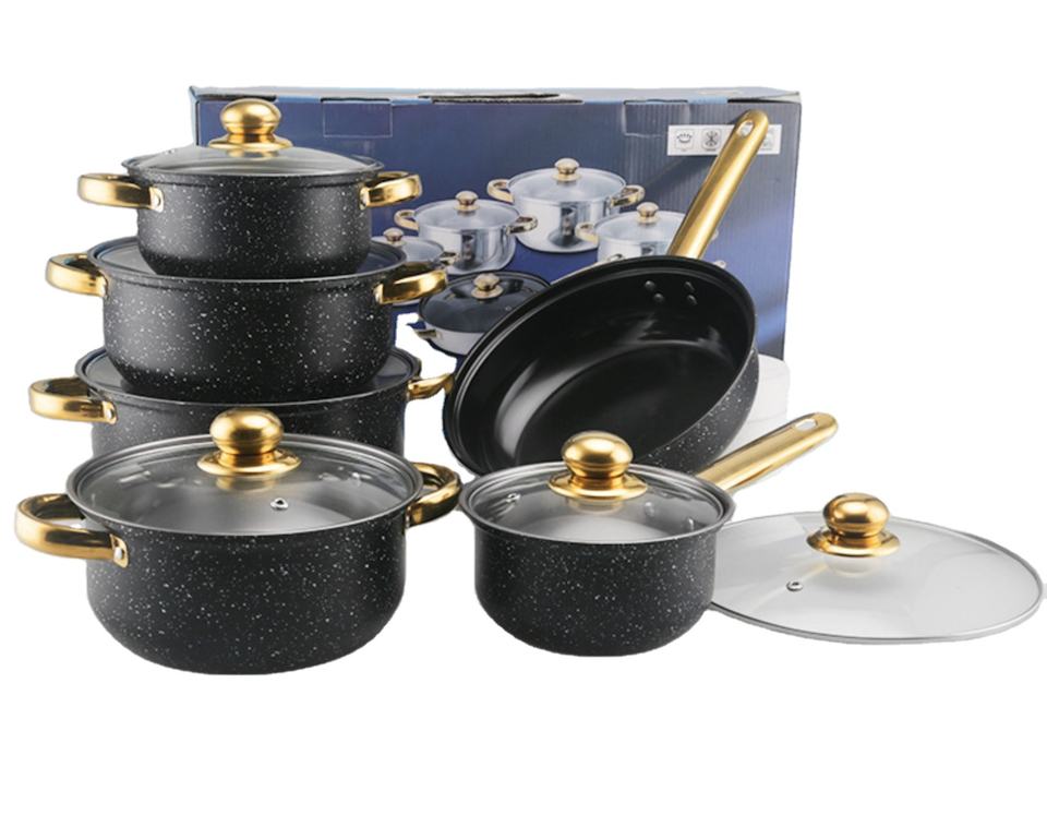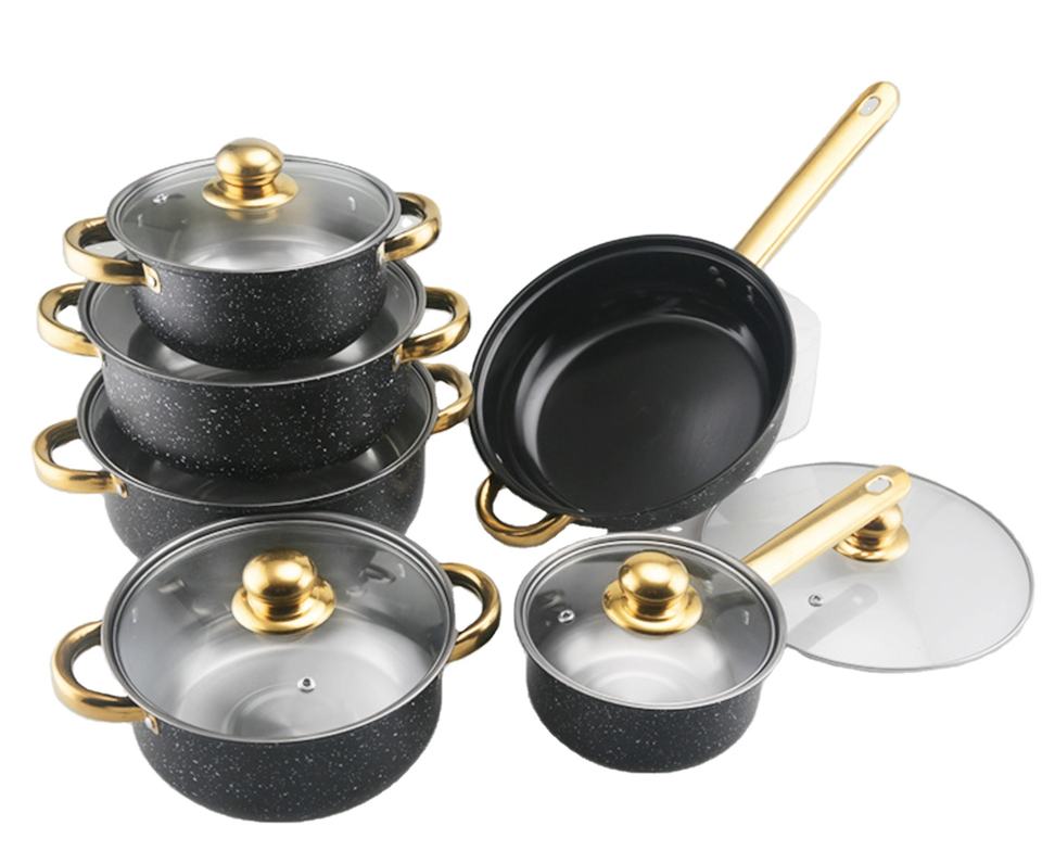 12/18-Piece Black Stainless Steel Nonstick Cookware Set with Gold Handle, Stone Coating Pots and Pans with Cooking Utensils