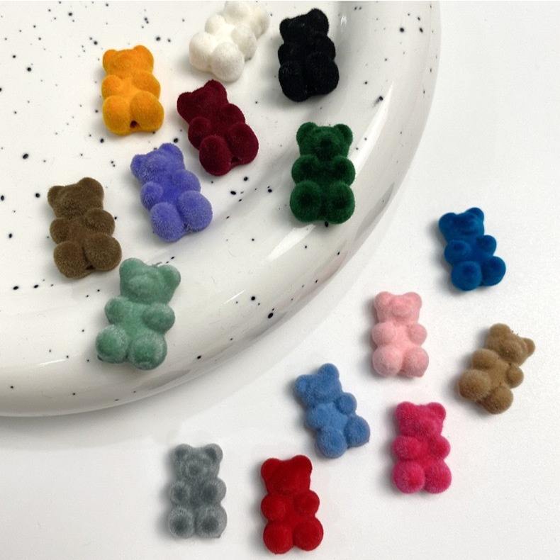12*18mm colorato peloso Mini floccaggio orso animale sfuse perline acriliche fai da te fatto a mano per la creazione di gioielli accessori orecchino