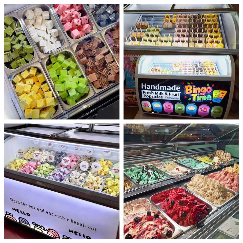 Vetrina Refrigerata per Gelato da 12-20 Vaschette, Congelatore da Banco con Base in Marmo per Gelateria