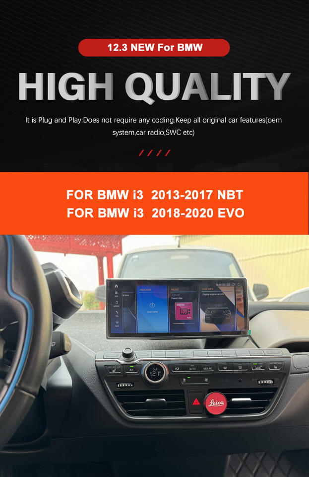 Schermo Android da 12,3 Pollici con Carplay, Navigazione GPS, WIFI e USB per BMW I3 I01 2014-2017, Lettore Multimediale per Auto