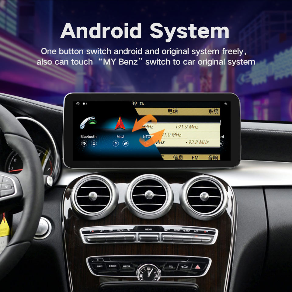 Carcoolera Schermo Android 12,3" Android 13 4-8GB/64-256GB GPS Wi-Fi 4G Wireless CarPlay per Mercedes C-Class NTG5.0 2015-2018