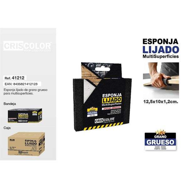 Blocco di Spugna Opaca 12,5*10*1,2cm Grano Grosso ESPONJA LIJADO, Tampone Abrasivo