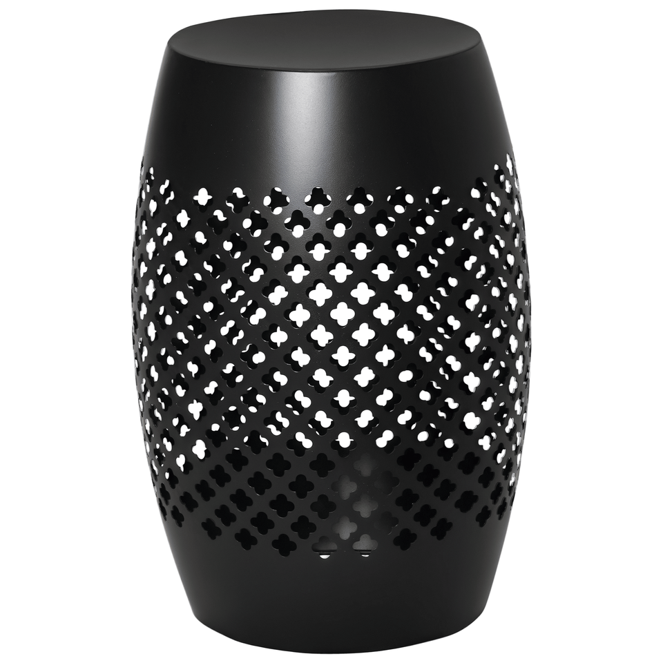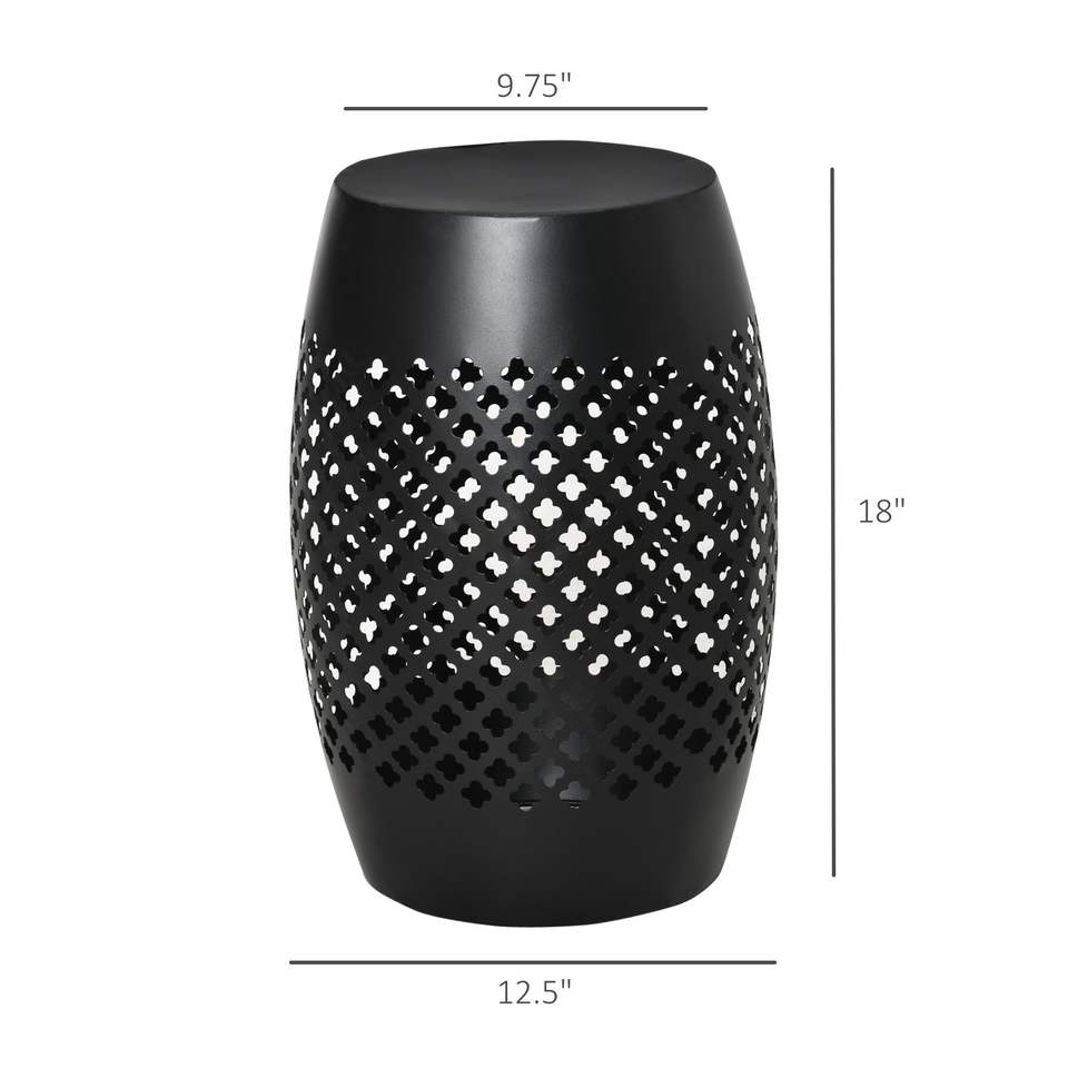 Tavolino Laterale da Esterno in Acciaio Nero da 12,5 Pollici, Tavolo Rotondo Cavo a Tamburo per Patio, Adatto per Interni ed Esterni
