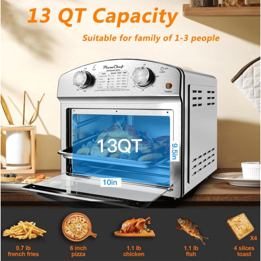 Forno a Convezione 7-in-1 da 12,5 Litri, 1500W, in Acciaio Inox, 5 Programmi Preimpostati - Funzioni Arrosto, Cottura, Griglia, Tostatura, per Uso su Piano di Lavoro