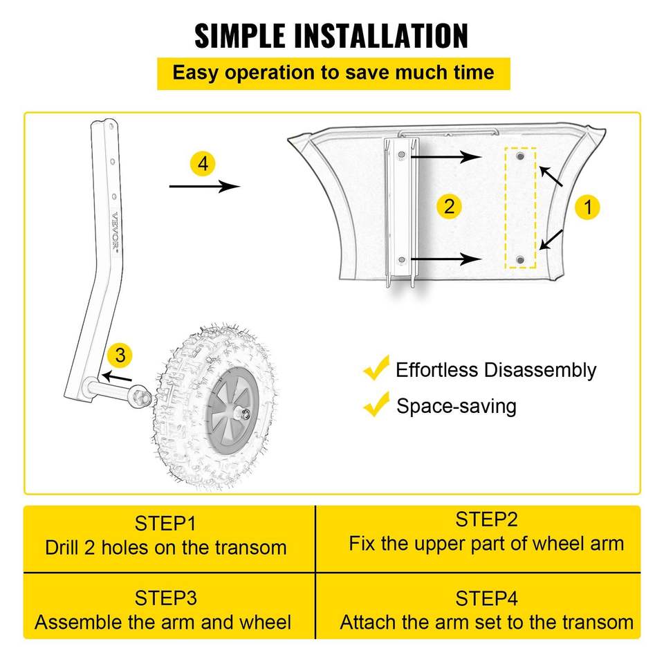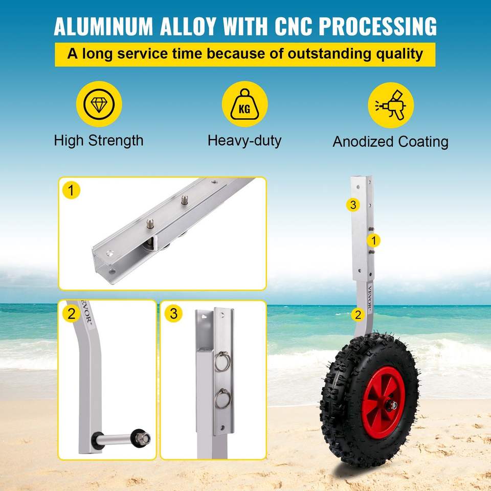 12\" Aluminium Alloy Inflatable Boat Launching Dolly Wheels 500 LBS Loading Capacity 4 PCS Quick Release Pins Parts Accessories