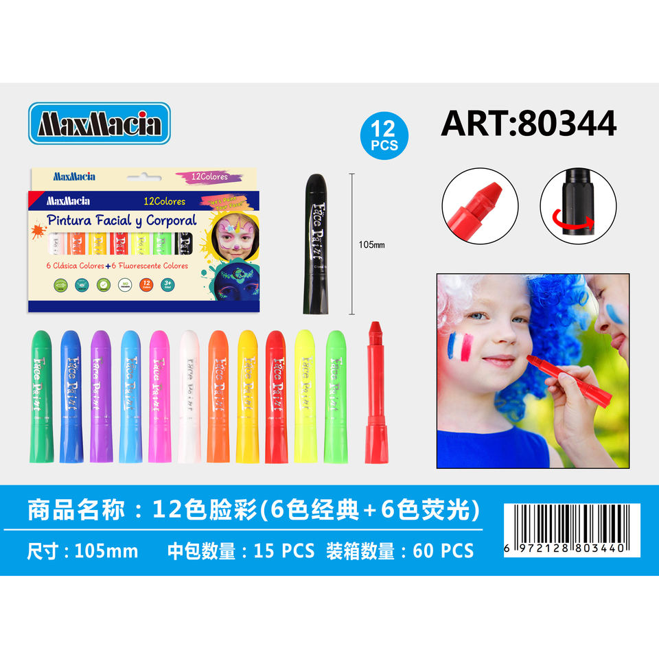 12 Color Waterproof Face and Body Paint Set 6 Classic and 6 Fluorescent Shades for Creative Designs