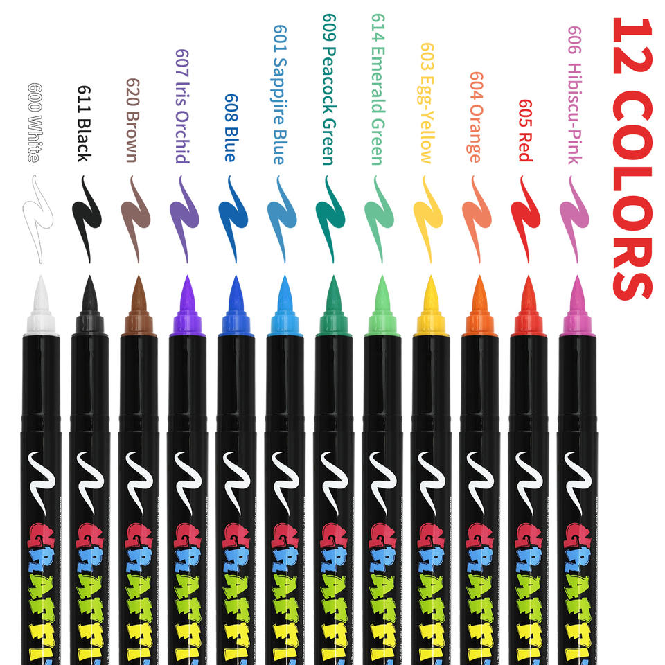 12 Colors Brush Tip Acrylic Paint Pens Markers, Premium Acrylic Paint Pens for Most Surfaces, DIY Crafts Making Art Supplies