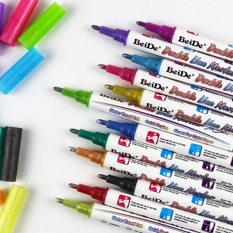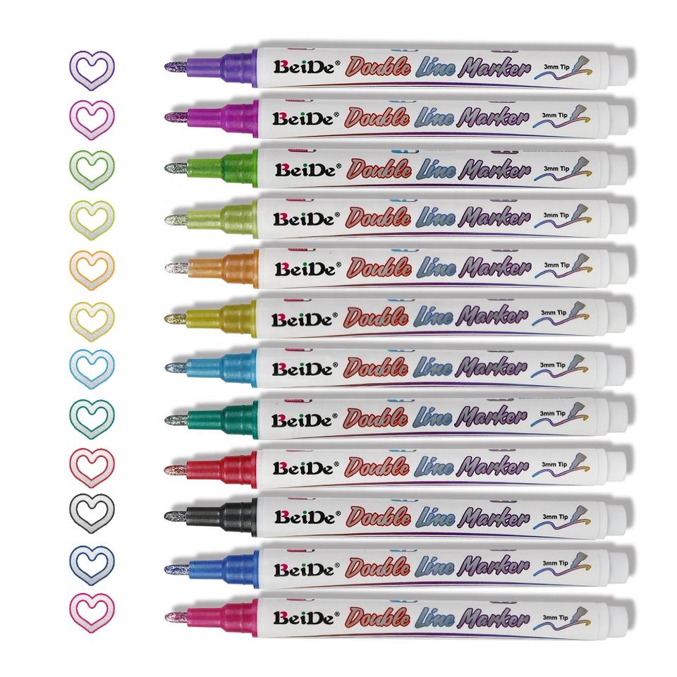 Marcatori di vernice a doppia linea con pennarelli a 12 colori glitterati metallici per disegnare carte