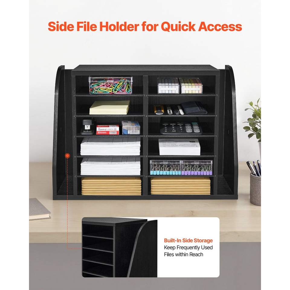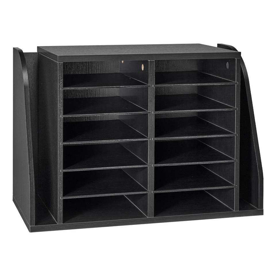 Organizzatore per Documenti a 12 Scomparti, Cassetta Postale Verticale per Ufficio, Contenitore in Legno Truciolare per Corrispondenza e Chiavi, Organizzazione a Parete