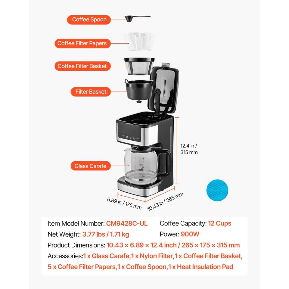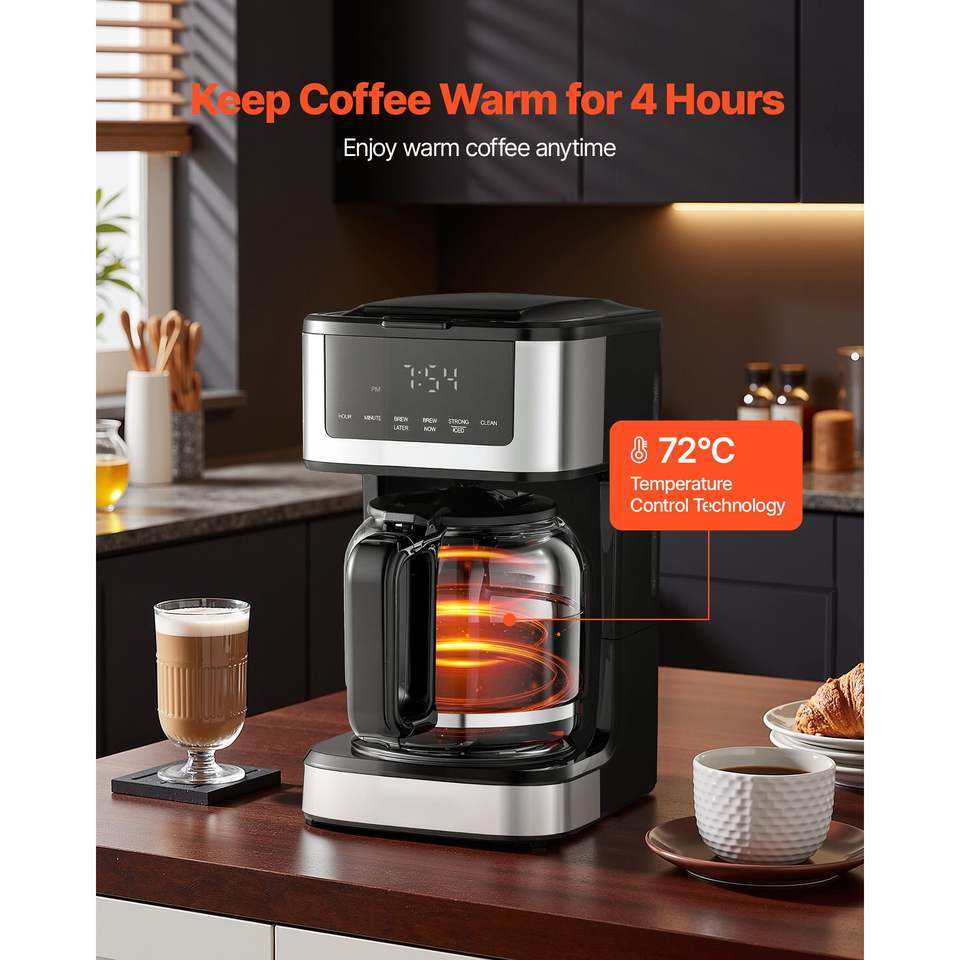 Macchina per Caffè Elettrica Programmabile con Schermo Touch, 12 Tazze, Funzione Mantenimento Calore 4 Ore, Sistema di Preparazione Doppio