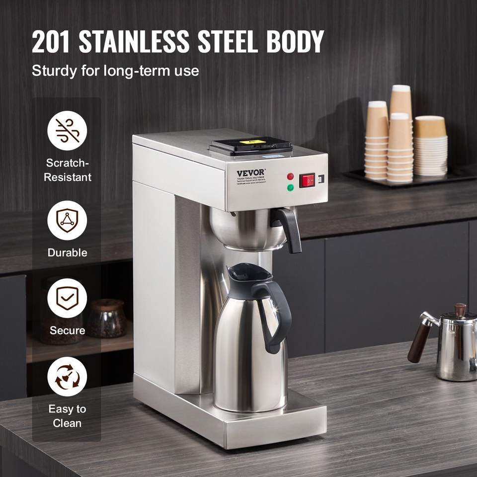 Macchina per Caffè Elettrica a Goccia in Acciaio Inox da 12 Tazze con Caraffa Termica per Mantenere il Caffè Caldo o Freddo