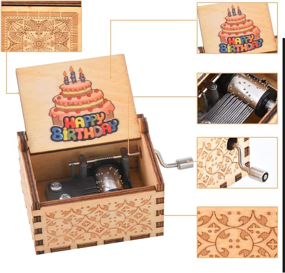 Carillon in Legno Portatile con 12 Disegni 'You Are My Sunshine', Manovella Manuale, Incisione Personalizzata, Regalo in Legno