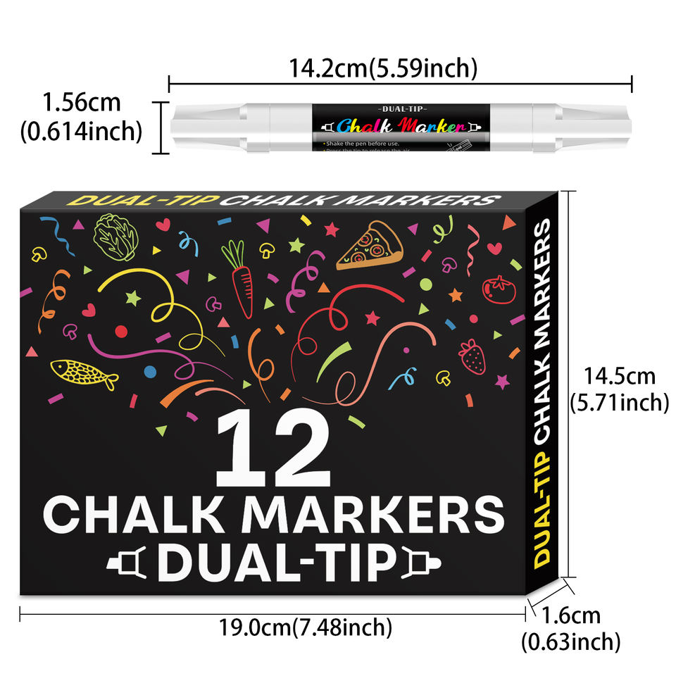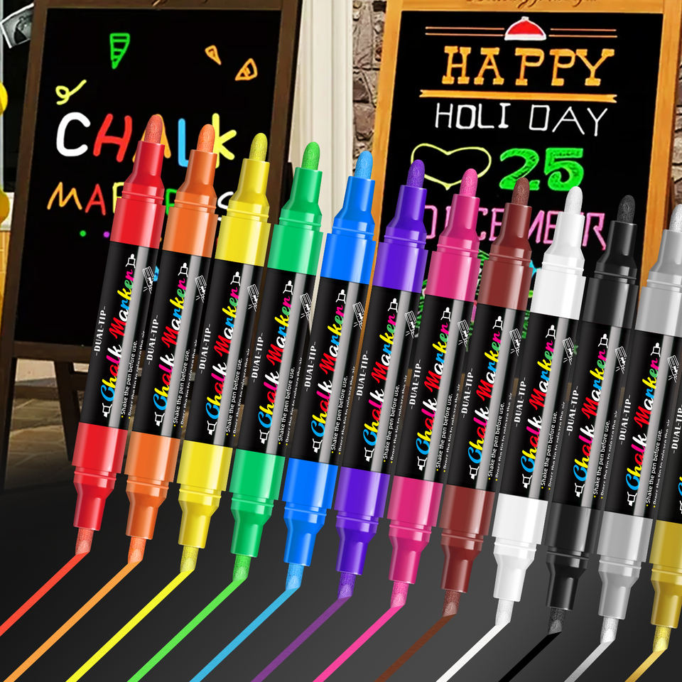 12 pennarelli per gesso liquido a doppia punta-pennarelli per gesso cancellabili per lavagna, cartelli per lavagna, vetro, penne per gesso