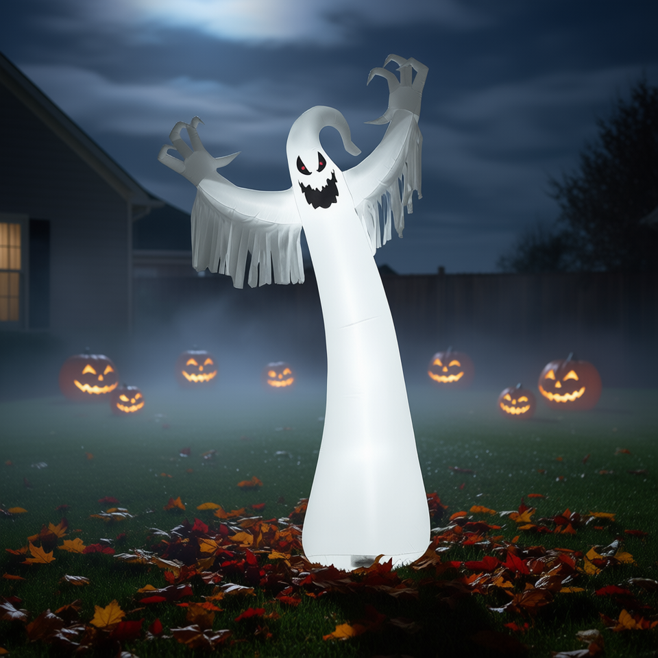 Spooky Ghost Inflatable 12 Feet Halloween Outdoor Yard Decoration With Led Lights And Blower White Pvc Material
