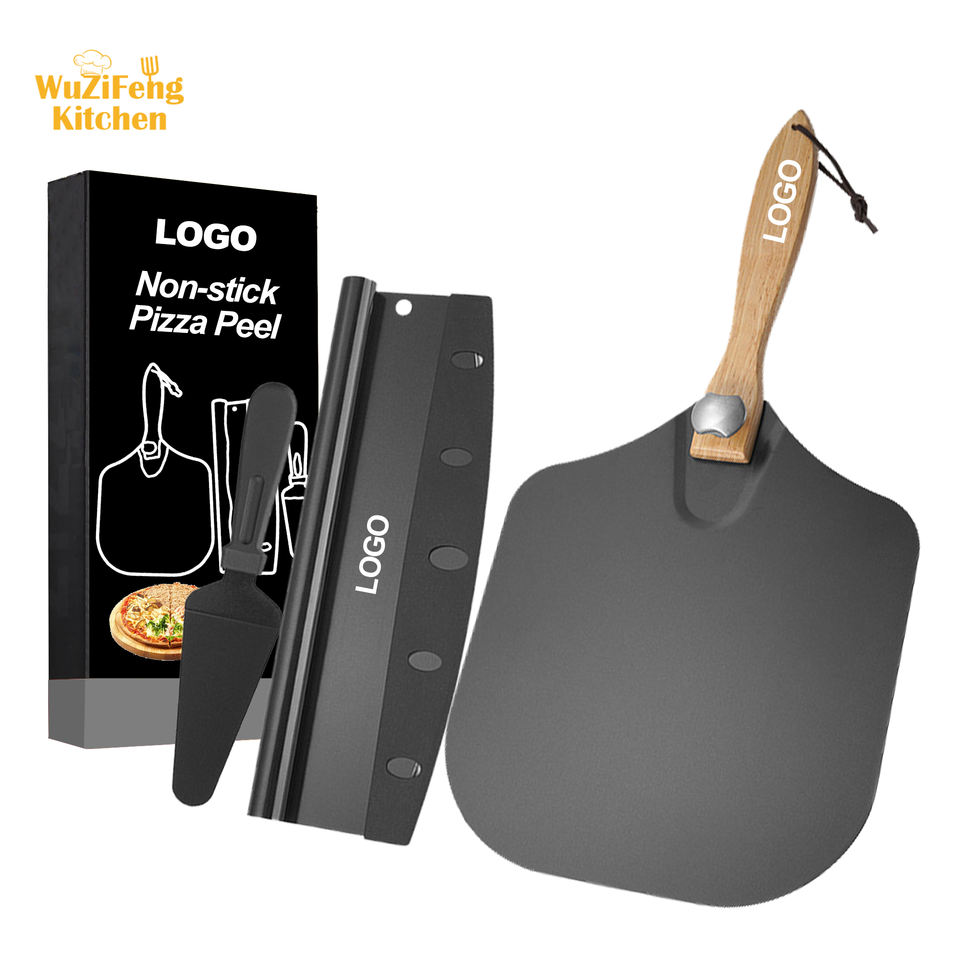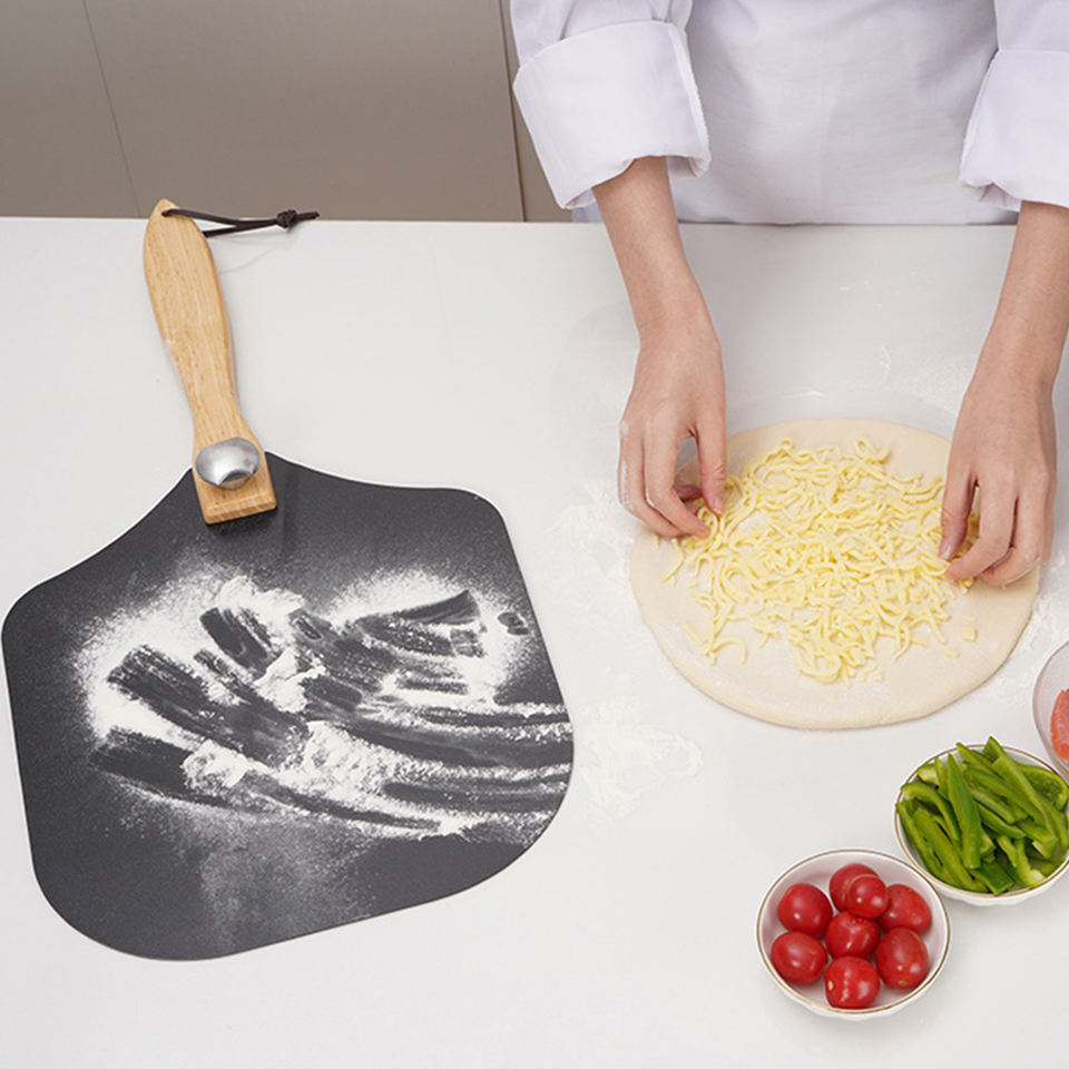 12 "legno pieghevole manico nero antiaderente rivestimento in alluminio Pizza Peel Rocker per Server Set accessori per forno per Pizza Kit utensile