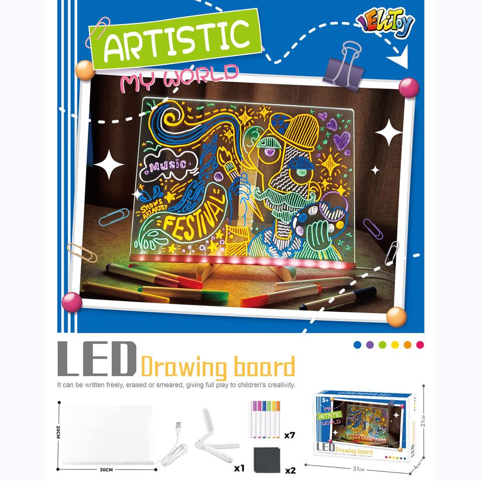 12 INCH Glow in the Dark Drawing Board LED Writing Tablet with Erasable Surface Kids Light up Doodle Board Educational Toy Gift