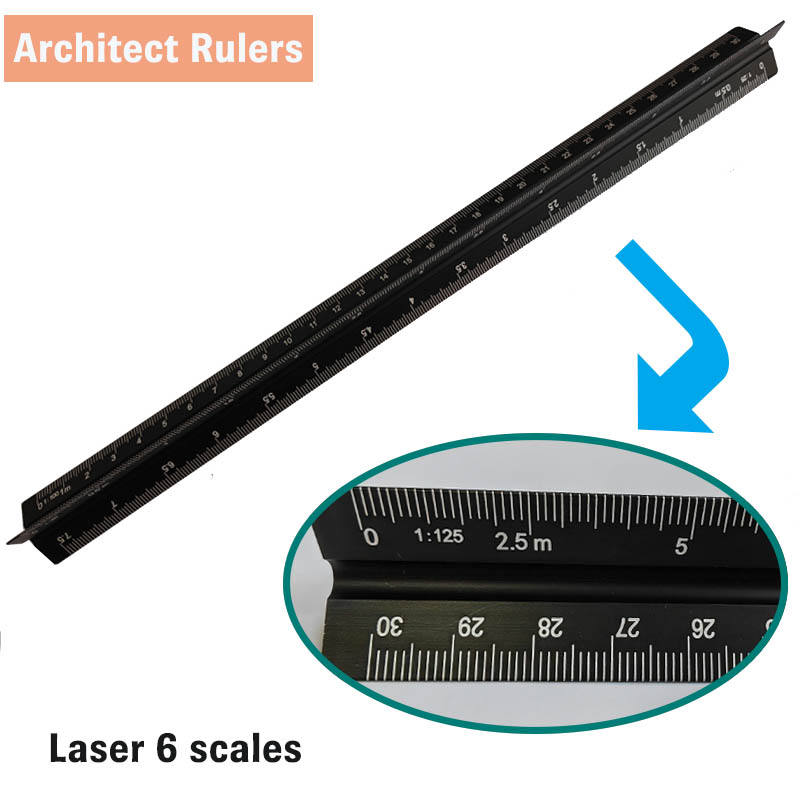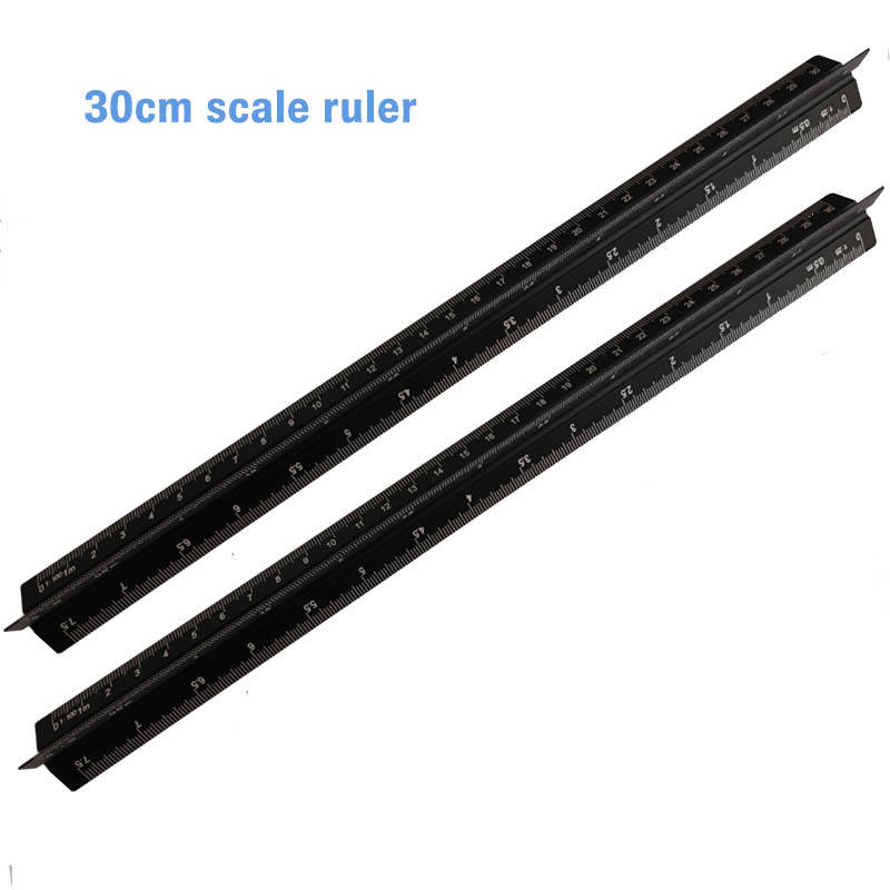 12 pollici/30cm L righello nero a forma di triangolo scala diverse Scale righello personalizzato in alluminio per ufficio, architetto, artista