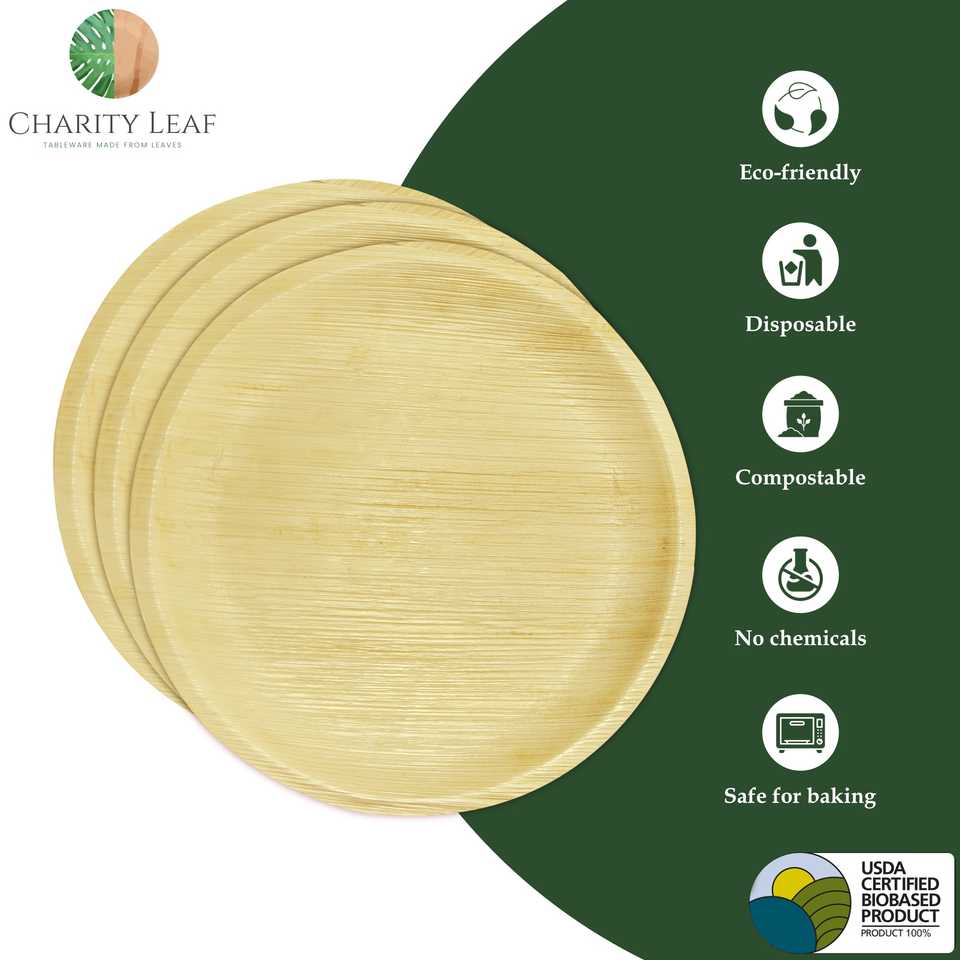 Piatto Rotondo in Foglia di Palma Naturale da 12 Pollici per Stoviglie e Decorazioni da Tavola