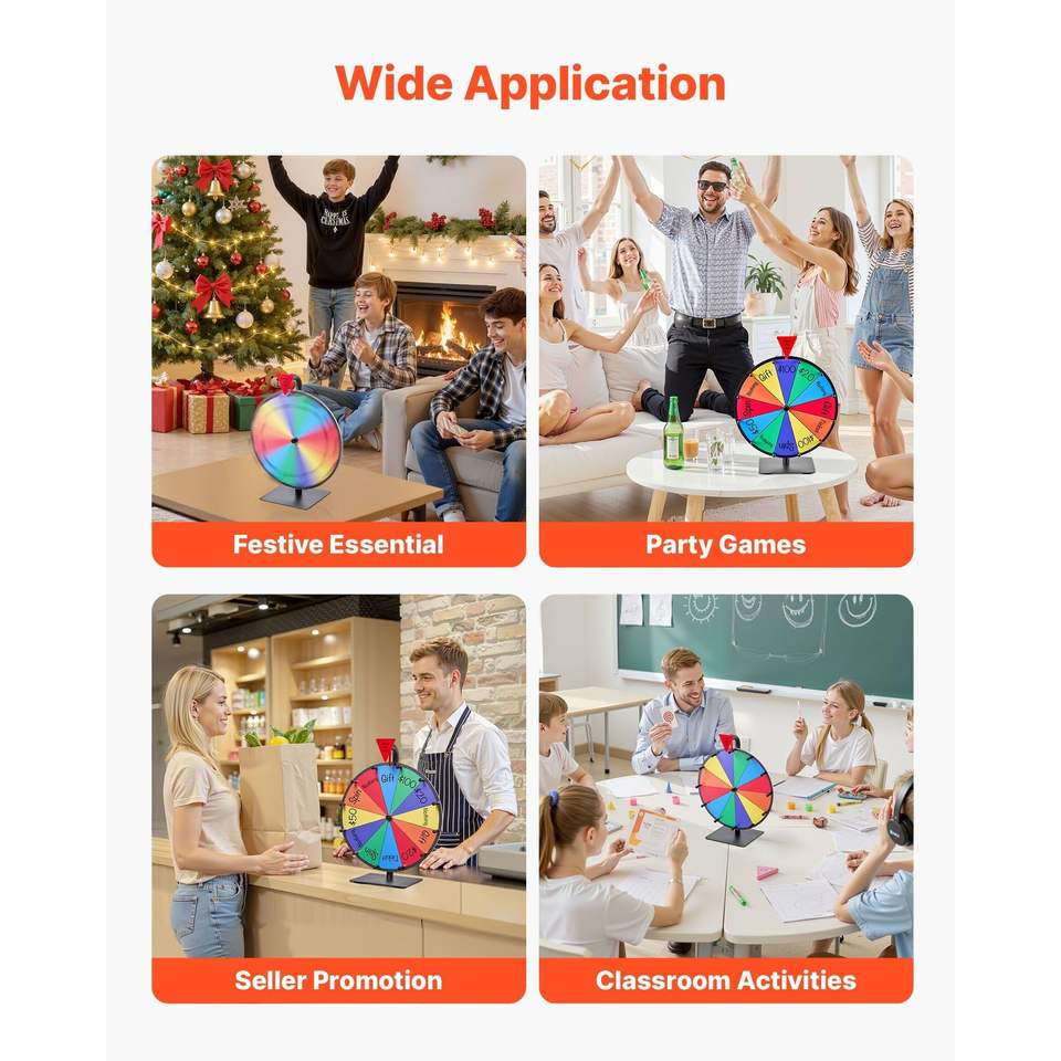 Ruota della Fortuna Girevole da 12 Pollici con Supporto da Tavolo, Roulette della Fortuna con 2 Pennarelli Cancellabili e 6 Scomparti - per Premi e Promozioni