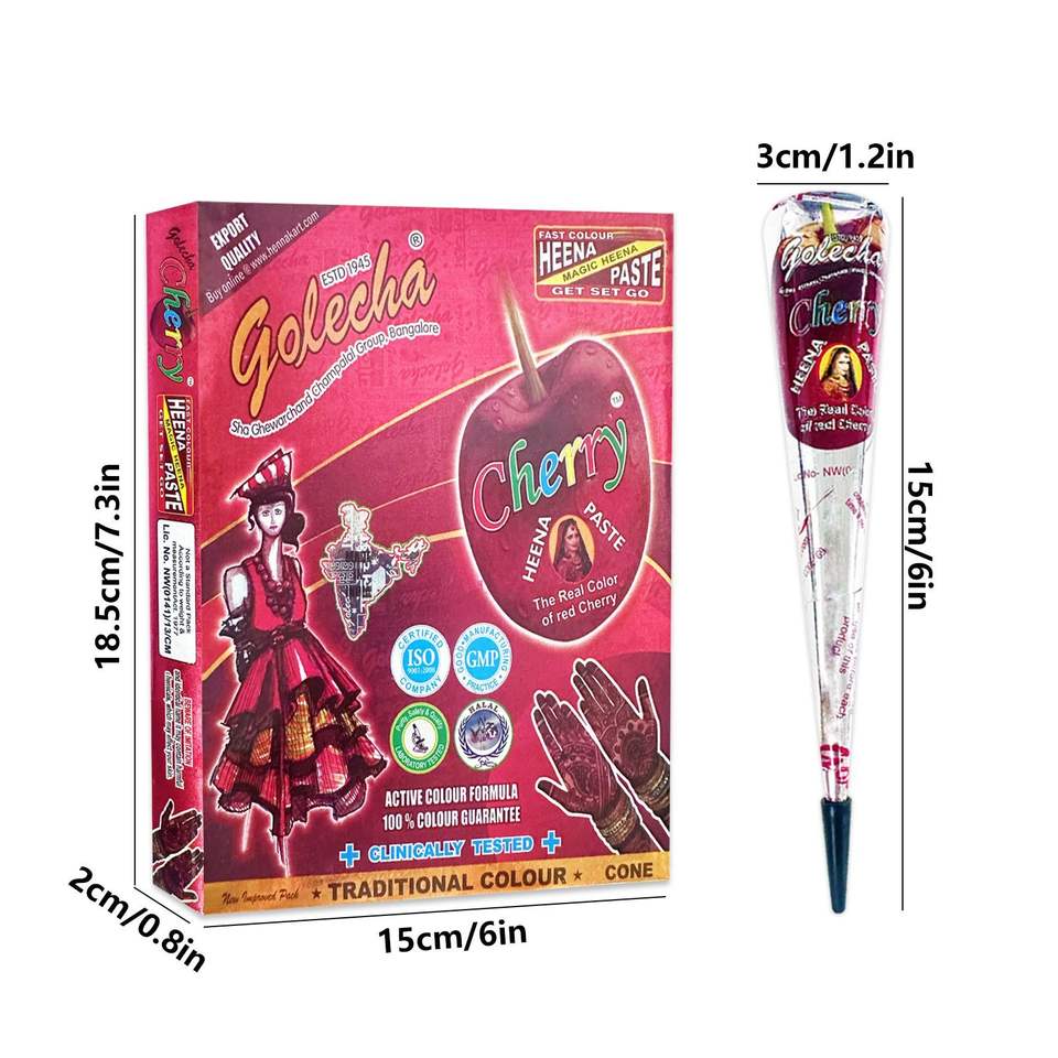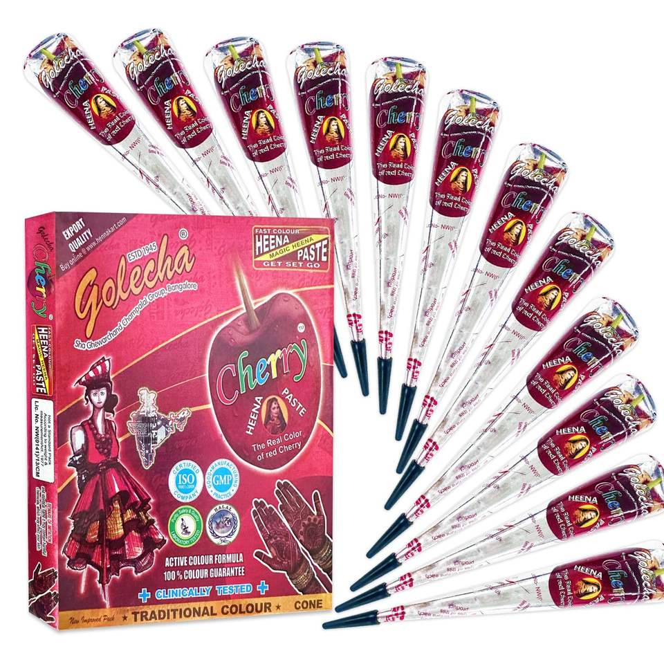 Confezione da 12 Coni di Henné Naturale al 100% per Colorazione Capelli, Crema per Body Art Naturale, Formula Erboristica Senza Ammoniaca, Rosso Ciliegia