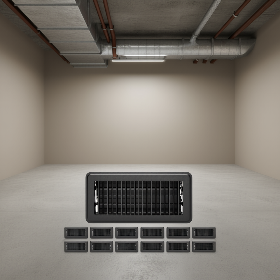 Black Iron Floor Register 4 X 10 Inch HVAC Vent Grille Industrial Design Easy Installation 12 Pack