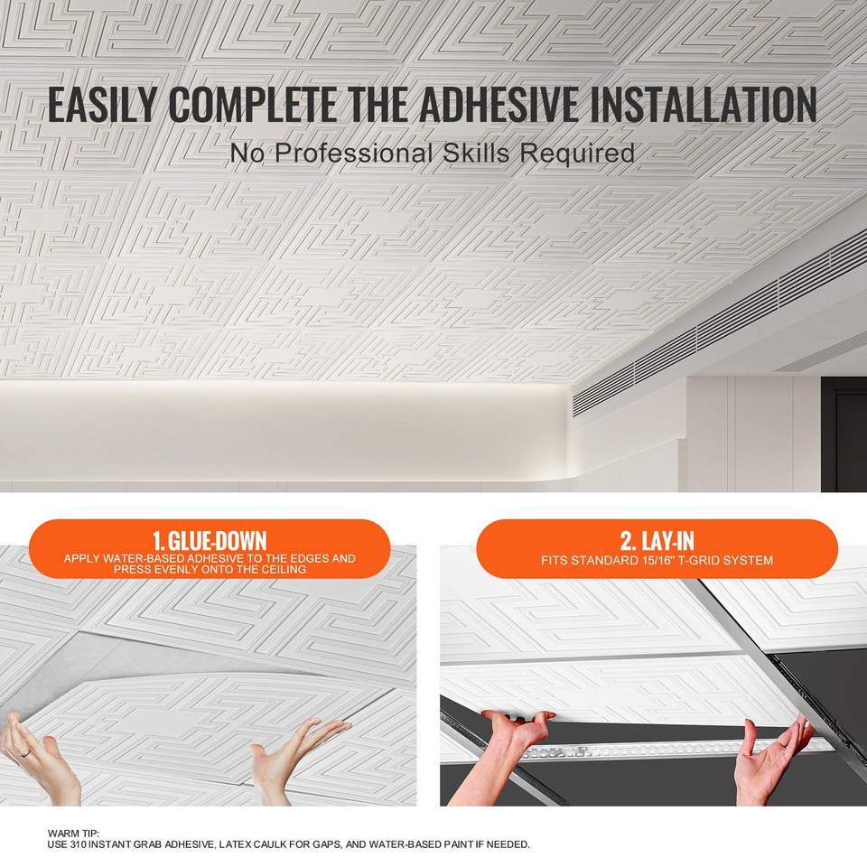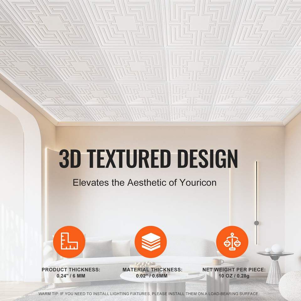 Confezione da 12 Piastrelle Premium in PVC per Controsoffitto 60x60 cm, Facili da Installare/Tagliare, Piastrelle in Plastica Adesive