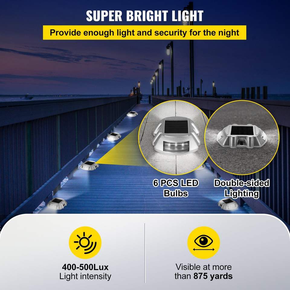 Confezione da 12 Luci Solari Bianche per Sentieri, Impermeabili, per Esterni, Terrazze e Giardini, 6 LED con Viti Incluse