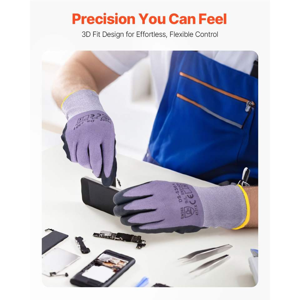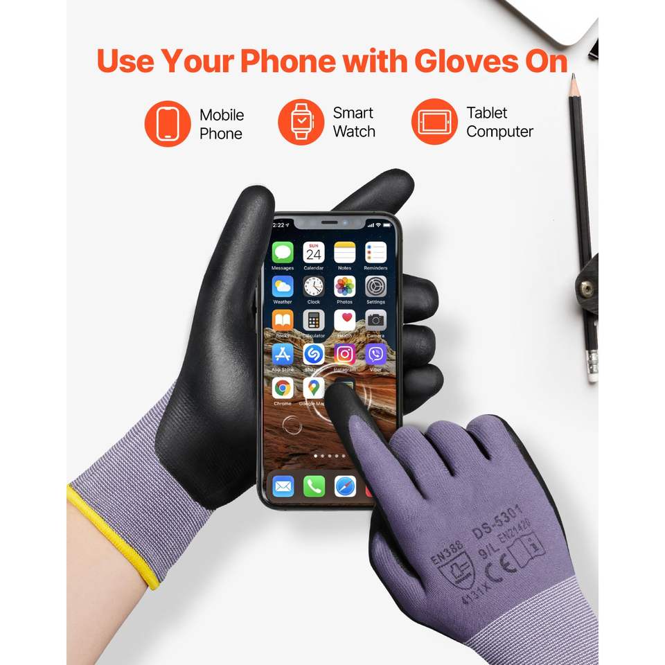 12 Paia di Guanti da Lavoro Rivestiti in Nitrile per Touch Screen, Guanti di Sicurezza per Giardinaggio e Edilizia